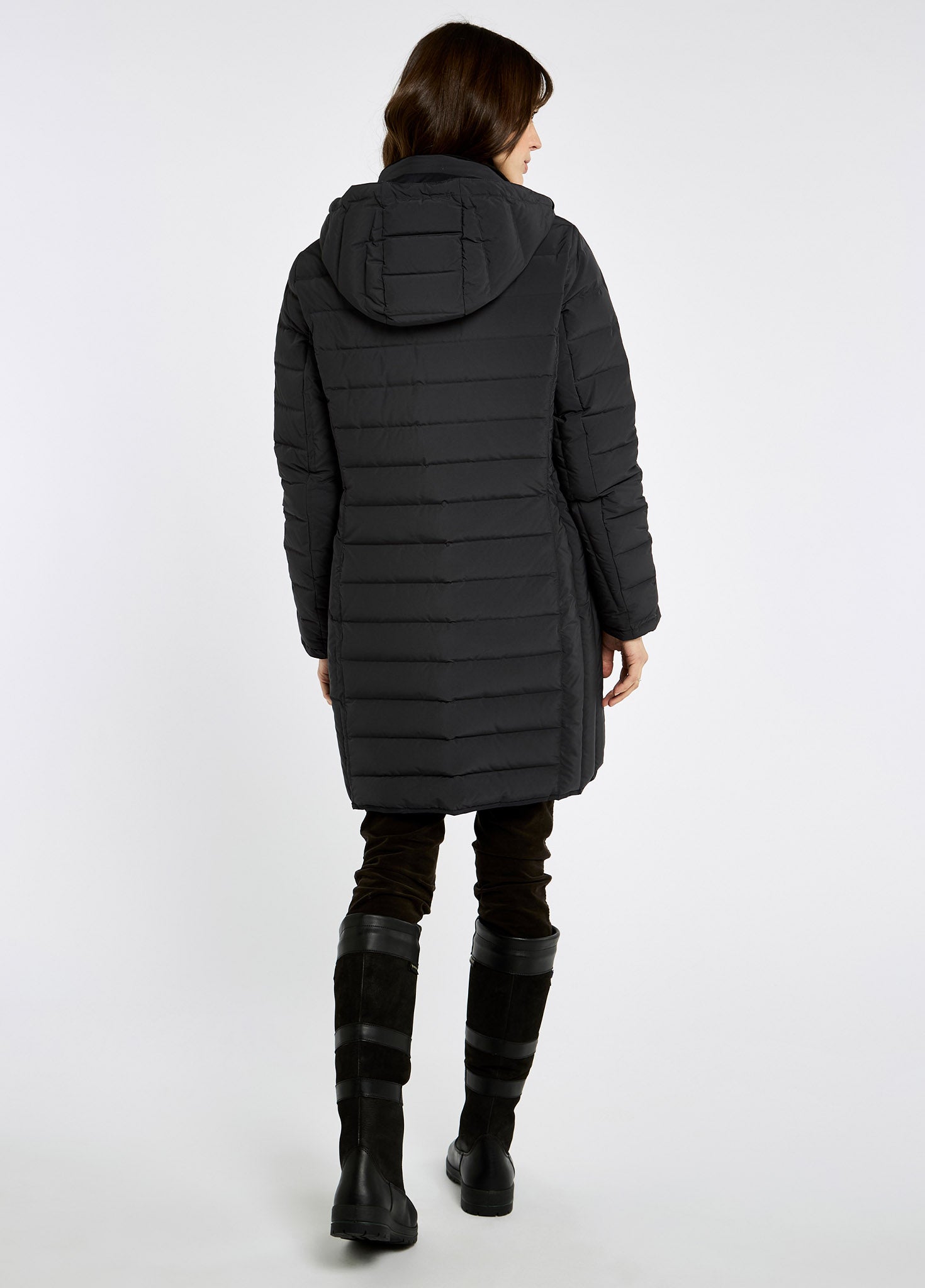 Hunker down in the Ballybrophy three-quarter length coat for serious seasonal warmth. Filled with ethically sourced 90% down and 10% feather, it has a handwarmer pockets, a detachable hood and a full-length two-way zip, making a snuggly, winter weather beater ideal for weekend errands and walks with the dog. Match with some Dubarry country boots for head-to-toe toastiness.