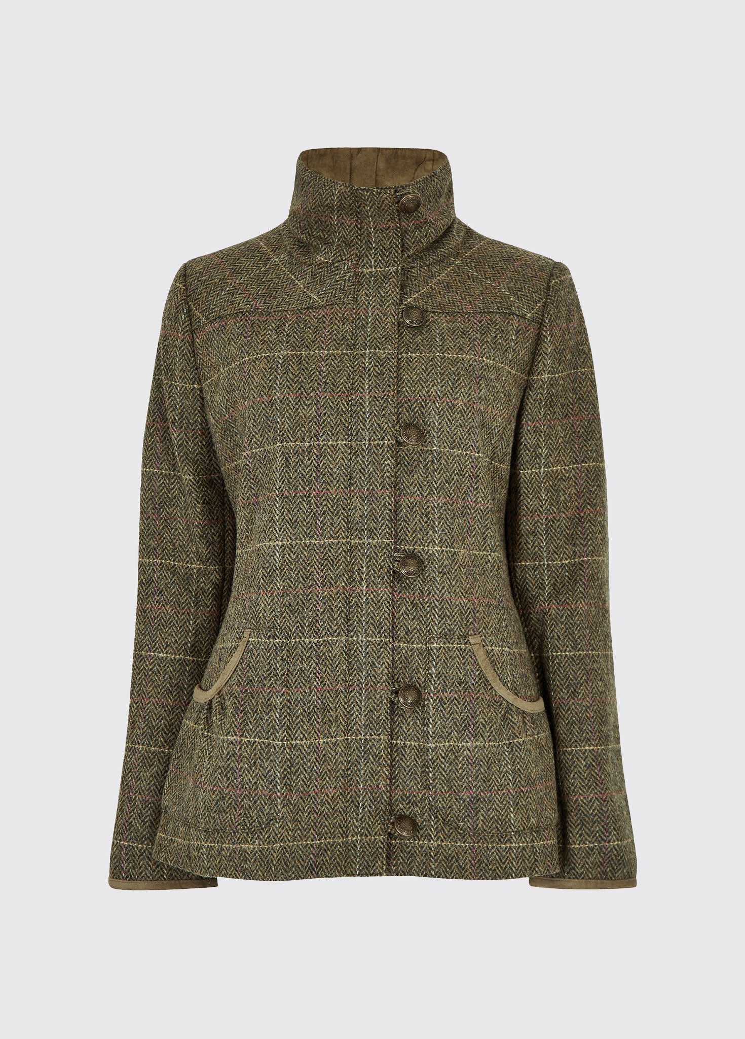 The Bracken is a smart women's tweed sporting jacket available in a variety of tweed colours. A Teflon coated 100% wool exterior repels showers and a storm flap fastened off center with eye-catching cast metal buttons hides a full-length zip which extends to the stand-up collar, to keep out chills. A great match with jeans and Dubarry country boots the Bracken is a very wearable jacket with deep gathered pockets that you'll find being used day in day out.