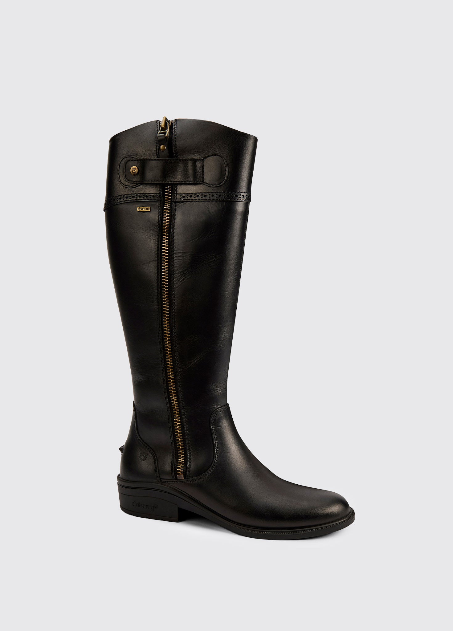 The Connemara is our tall crossover riding boot with a fully waterproof GORE-TEX lining, DryFast- DrySoft™ leather and a full-length side zipper for ease of entry. Like any other Dubarry country boot, you can walk through mud, rain and snow in style, but we have designed this boot with a stirrup-safe sole unit, seam-free contact areas on the inside leg and features that are engineered to offer comfort both in and out of saddle. The perfect every-day barn companion, and the boot you’ll want to take on that riding vacation to Ireland!