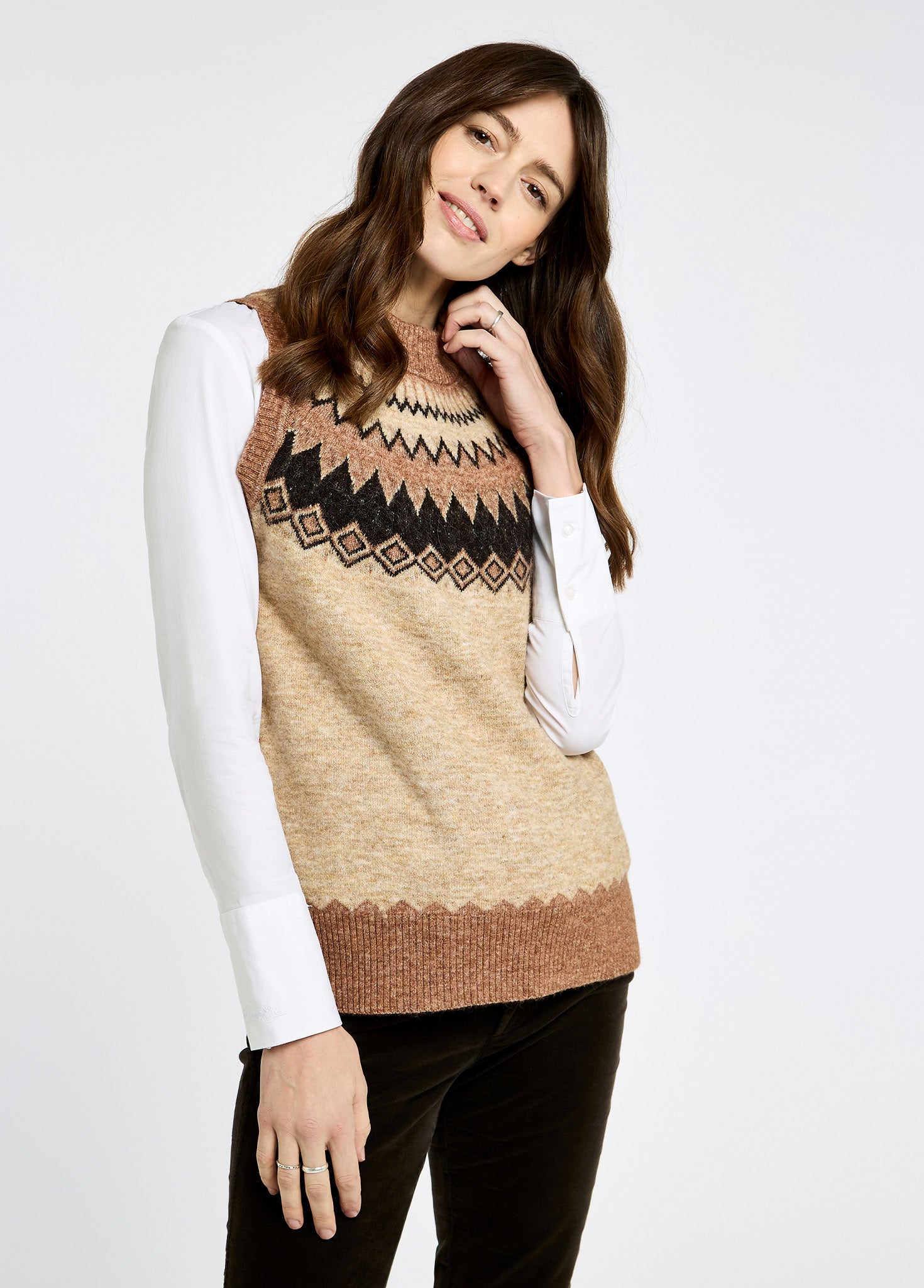 Doyle Women's Fair Isle pattern vest - Oat Multi