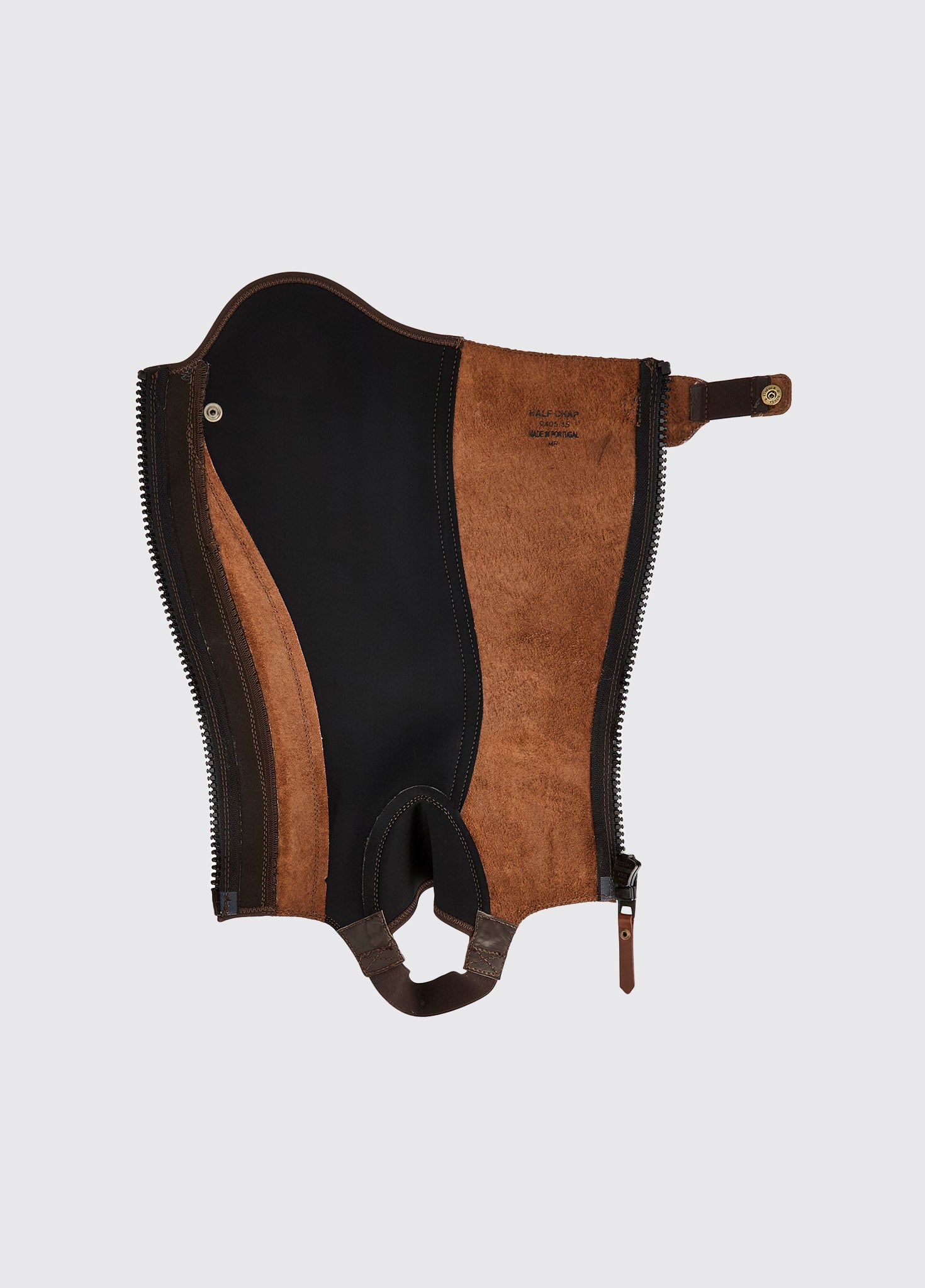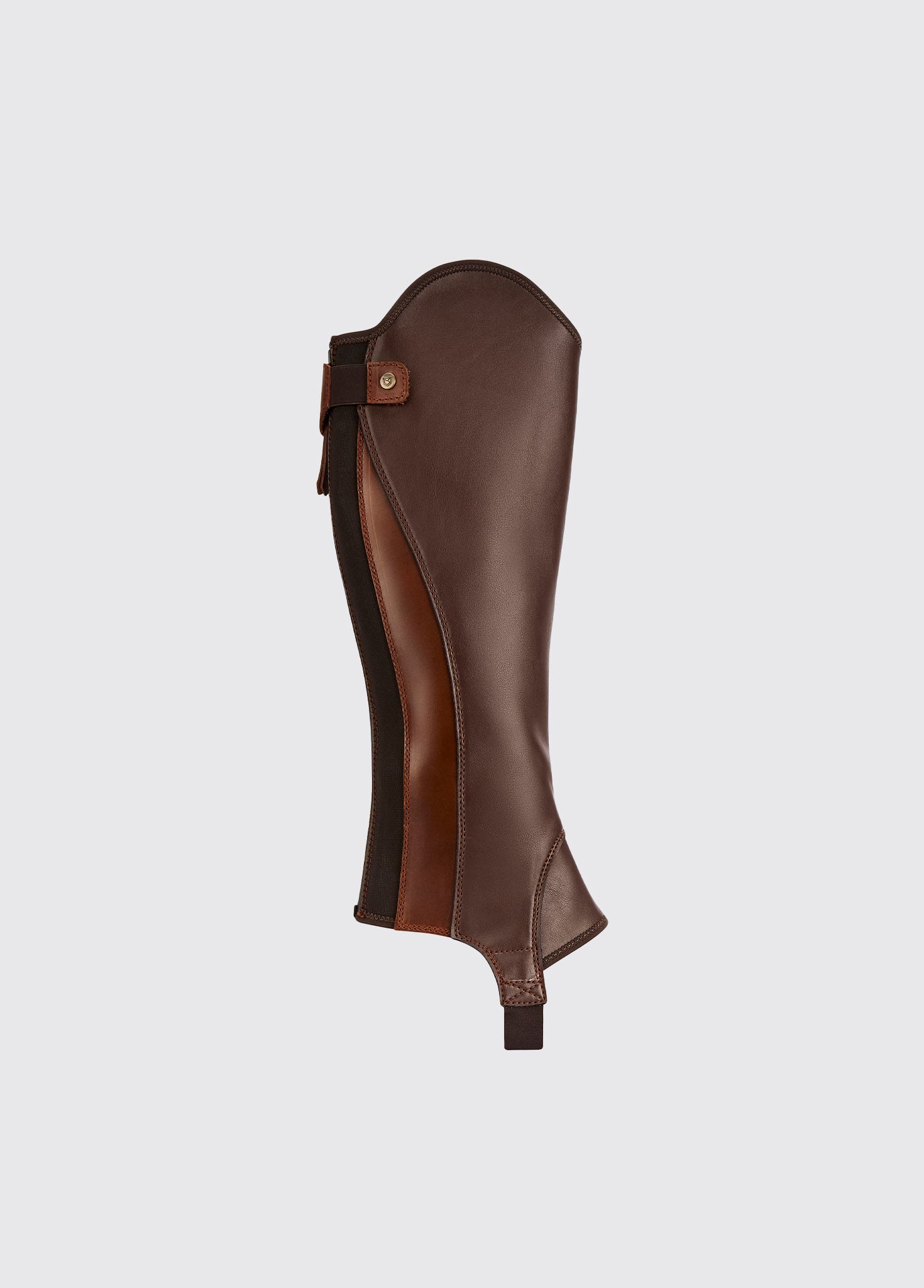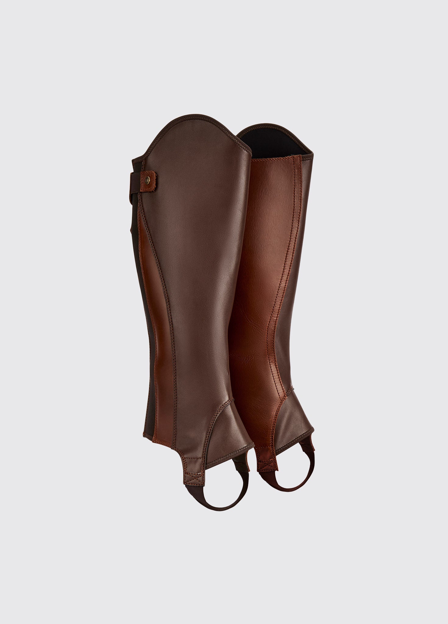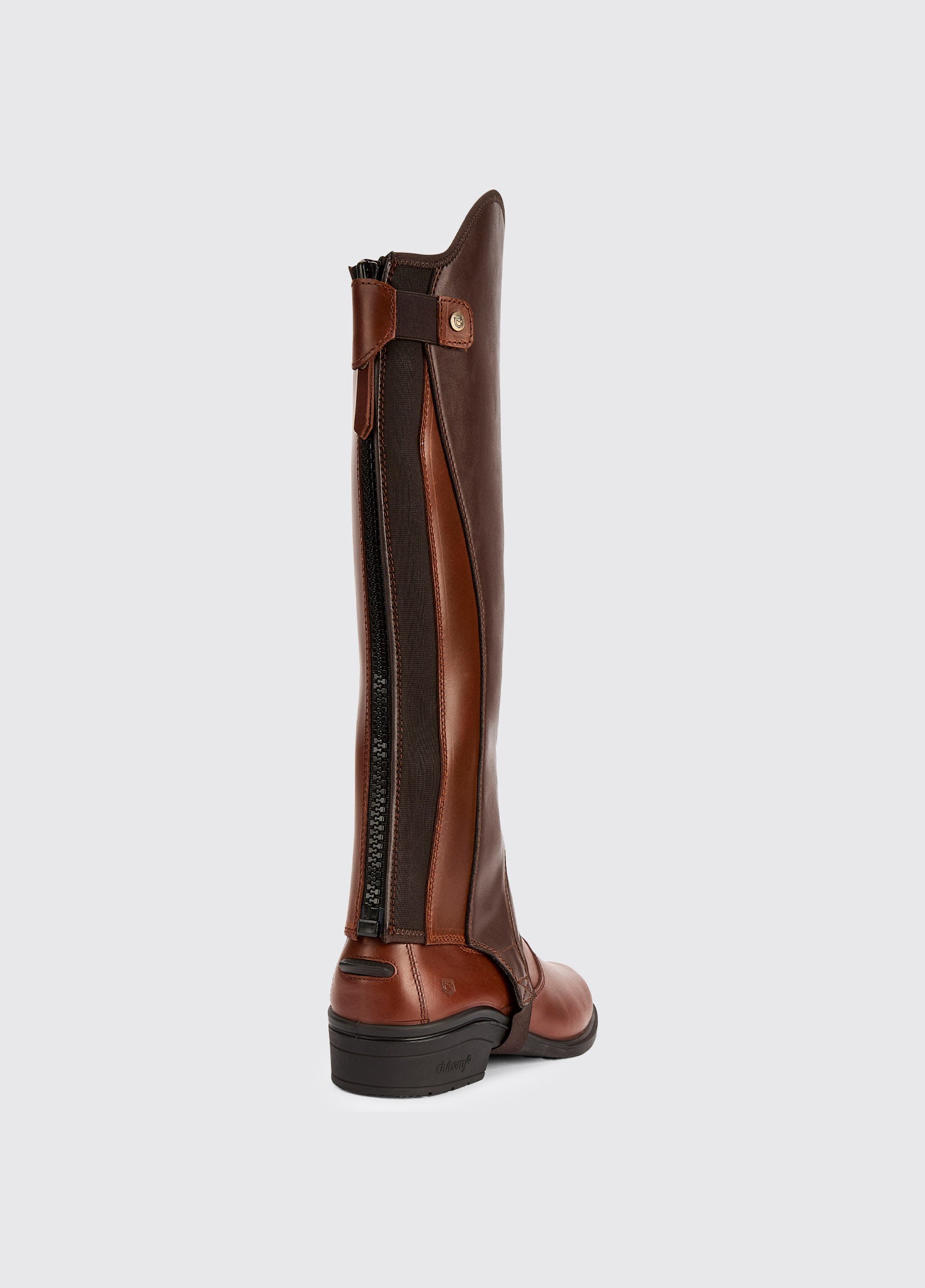 The Dubarry half chaps are made with the highest quality full grain leather, incorporating a full-length lateral stretch panel for a snug fit and an elasticated stirrup to pair perfectly with the Punchestown paddock boot.