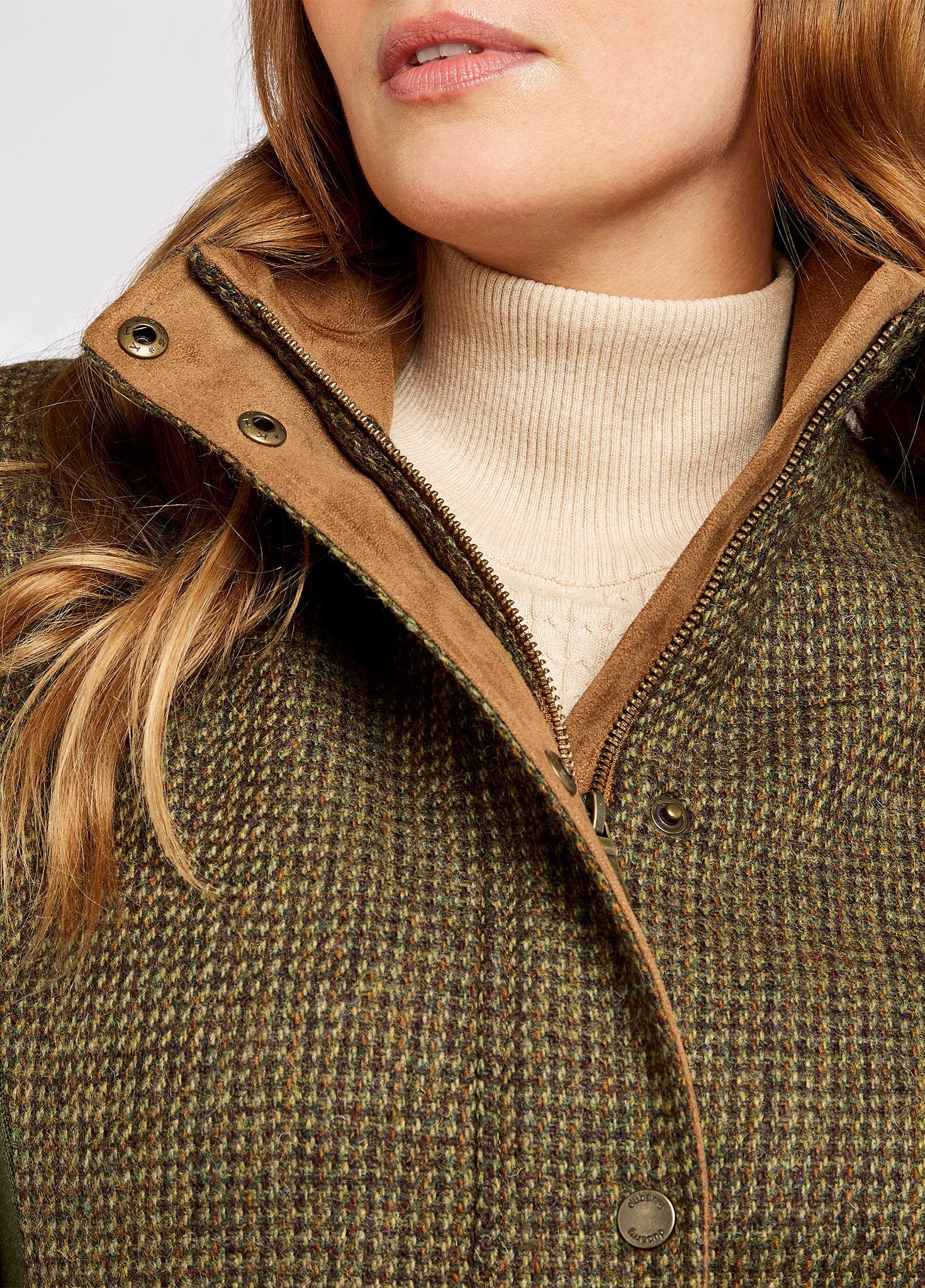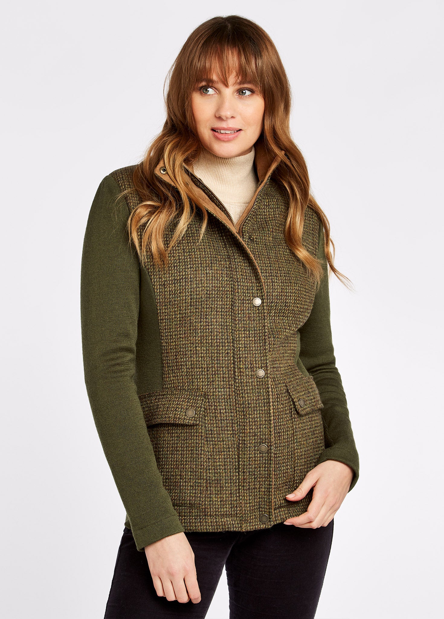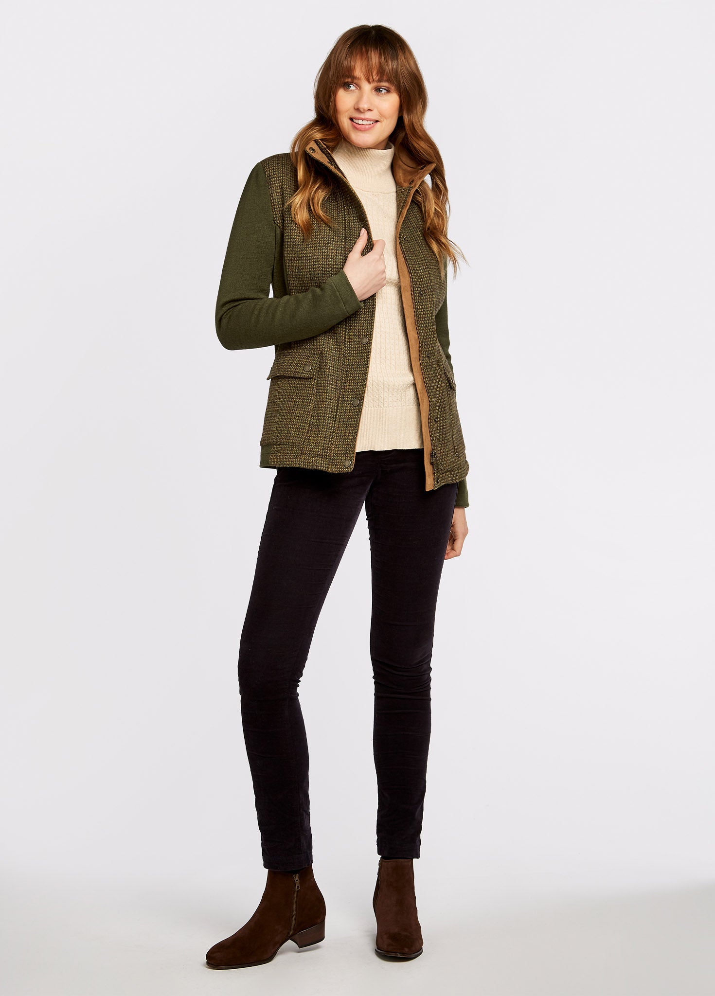 Stand out in the field with this contemporary take on a classic tweed. The Elmwood is made of a Teflon® coated Pure New Wool body combined with wool blend kintted side panels and sleeves. Inside a partial fleece lining adds extra warmth. A striking look worn day to day with jeans and Dubarry Fermanagh boots, or a smart style for early season shooting.