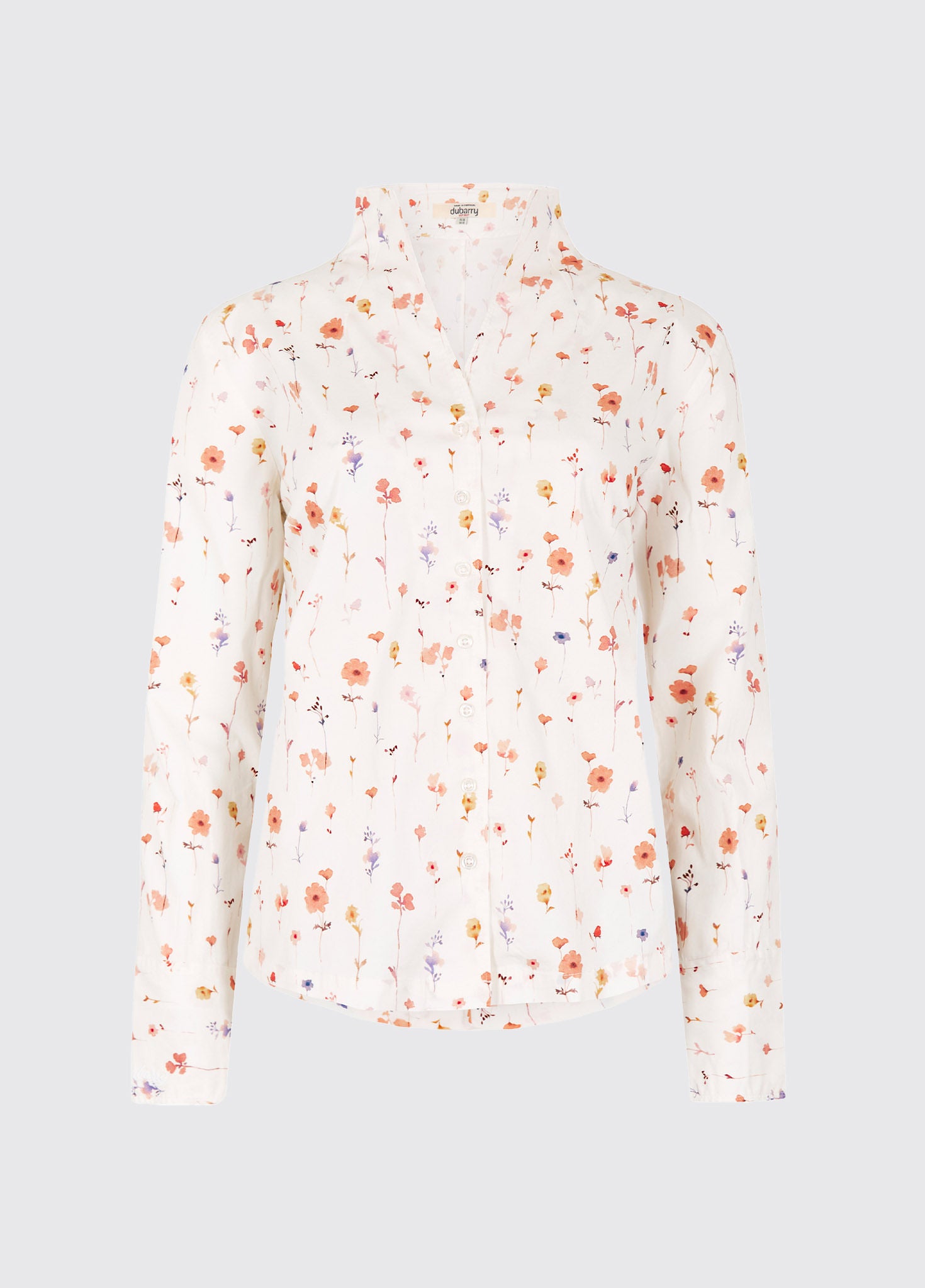 Refreshingly light weight retaining a quality feel, our Fuchsia cotton shirt has a touch of elastane for a neat fit with comfortable movement. The cheery floral pattern gives a spring boost to any outfit and is complimented by both the pale blue and bright white background options. A portrait collar makes this an especially versatile shirt, which can be dressed up or down easily, matching neatly with cotton trousers, or with lightweight shorts and denim for a relaxed summer outfit.