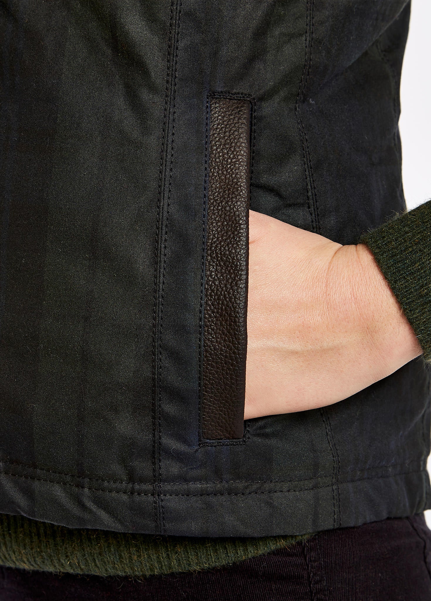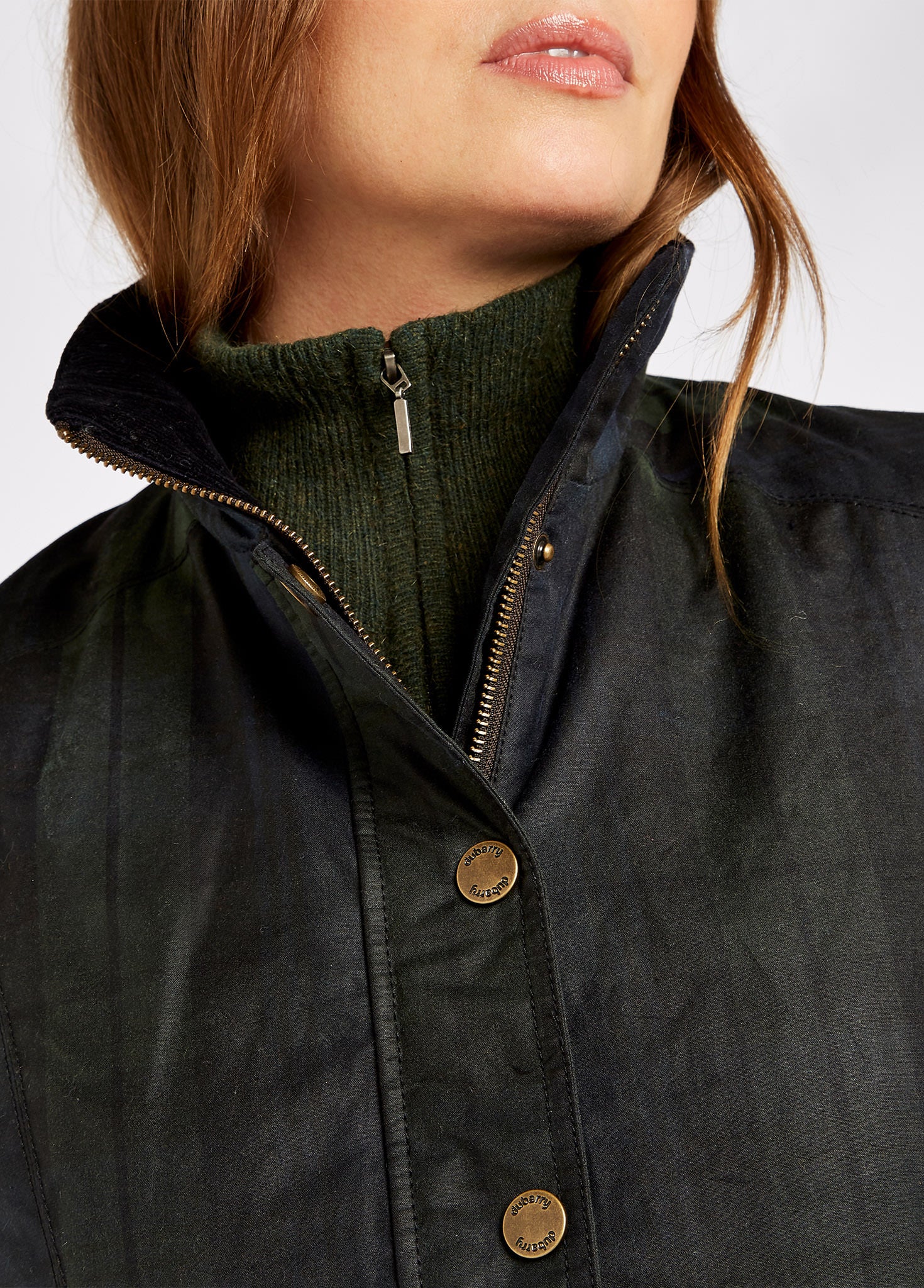 A perfect winter addition to any wardrobe, the Grange high-collared wax gilet is stitched with PrimaLoft® fill, ensuring warmth without the need for extra layers. Crafted from waxed cotton, this unique and versatile piece is finished with leather trim and branded studs covering the sturdy zipper, exuding elegance.