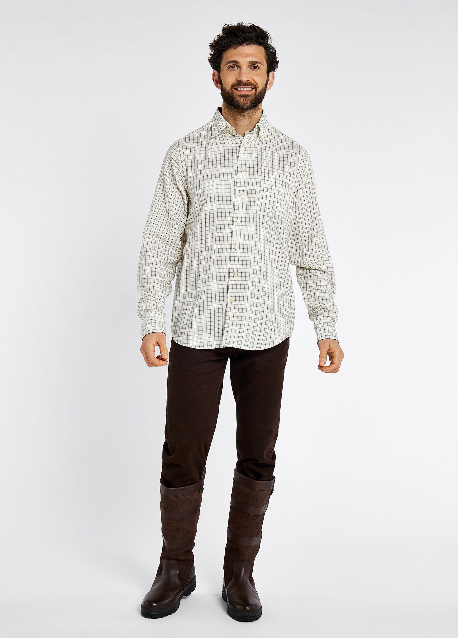 This quality, soft cotton men's shirt is hard-wearing and perfect for slipping on under a Dubarry gilet or jumper for either a day on a peg, or just relaxing at home. The Hollymount is a staple for any country gentleman's wardrobe and comes with both a chest pocket and a faux suede trim.