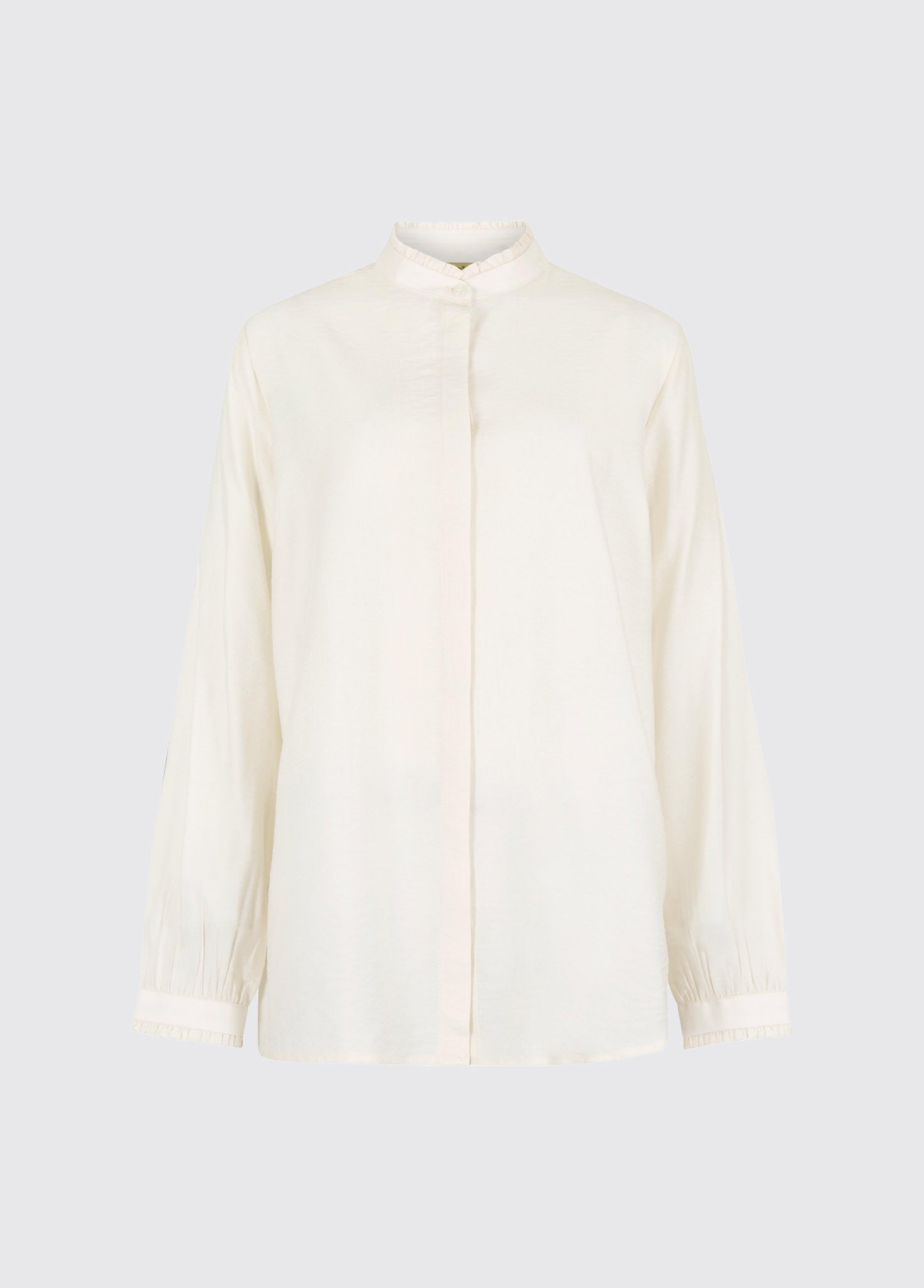 A beautifully light blouse with a dainty ruffle edged collar and cuffs will give your outfit a real touch of sophistication. Its longer length and rayon blend fabric mean it will flatter and fit most body types and can be worn over waistbands or tucked in thanks to its light weight. Stunning under tailored jackets but equally eye-catching paired with a knit.