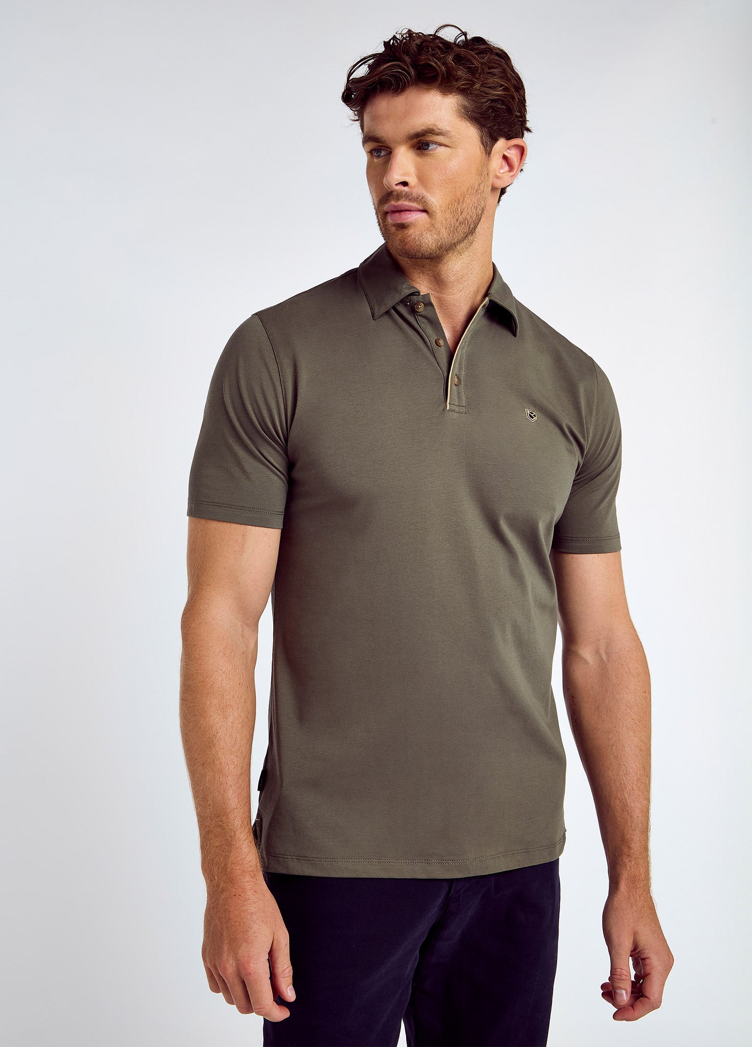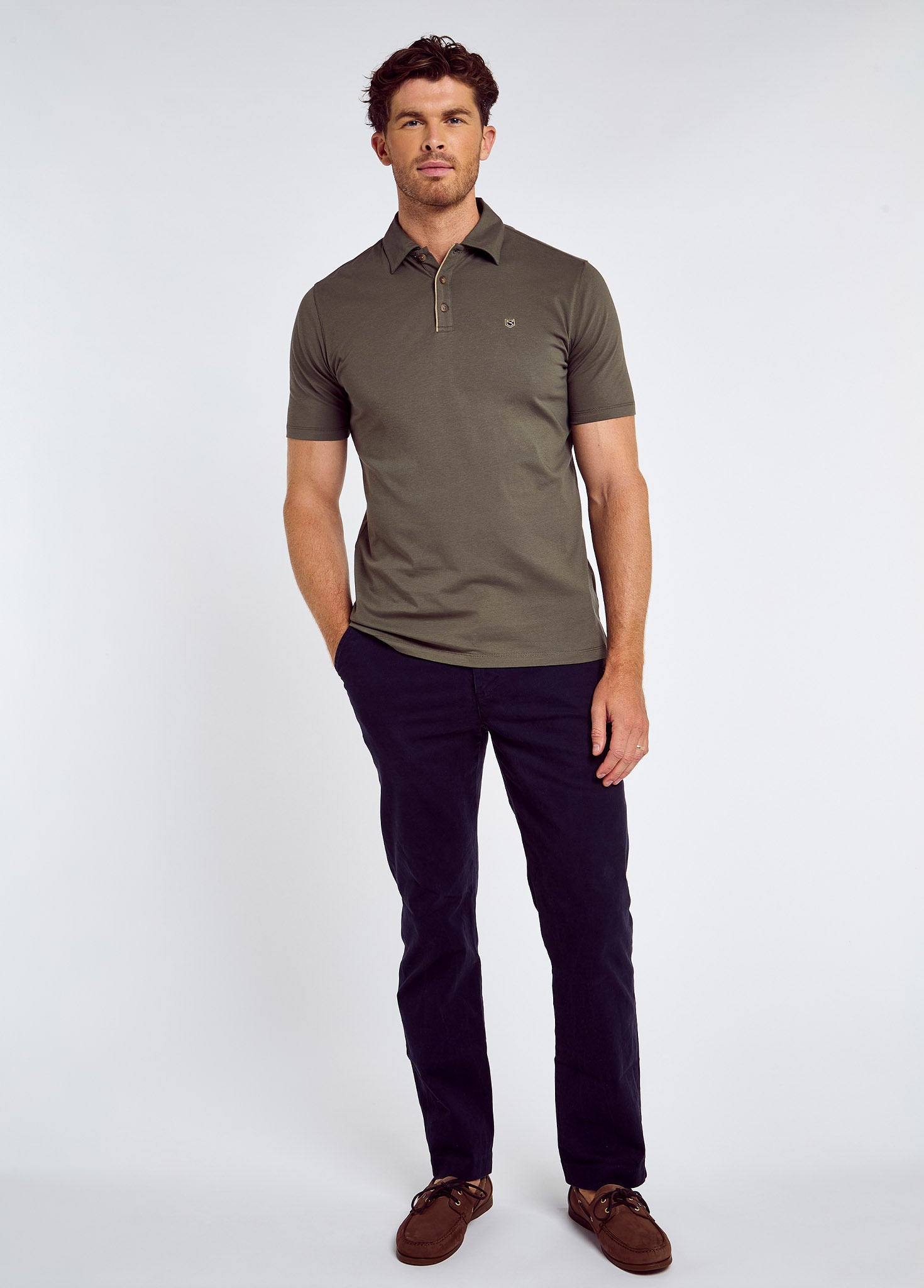 The Kilmurray Polo is a stylish men's polo shirt featuring a classic collar and a three-button closure, made from a comfortable blend of cotton and Sorona. The innovative Sorona fabric is environmentally friendly and ensures comfort with features such as softness, stretchability, and durability. It has a discreet Dubarry logo on the chest and side slits for enhanced mobility. Wear it on the golf course, while sailing, or for everyday use. The Kilmurray Polo is a versatile addition to any wardrobe.