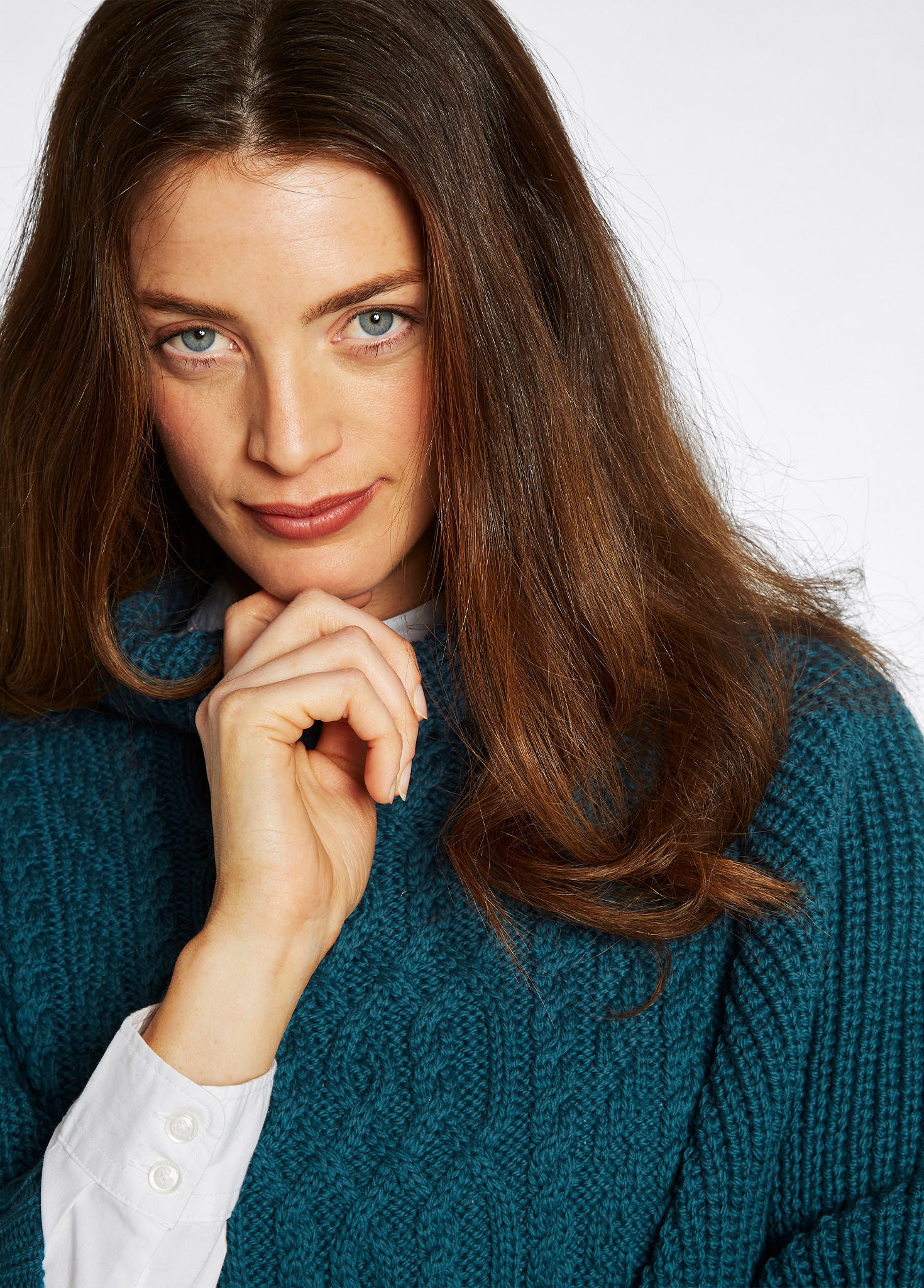 Where chunky sweater meets elegant poncho in a reassuringly heavyweight knit. Cosy and sublimely soft with 100% Merino wool, this is a proper winter warmer with a touch of grace. Just the thing for a smart weekend retreat and to elevate your jeans and boots style in an instant