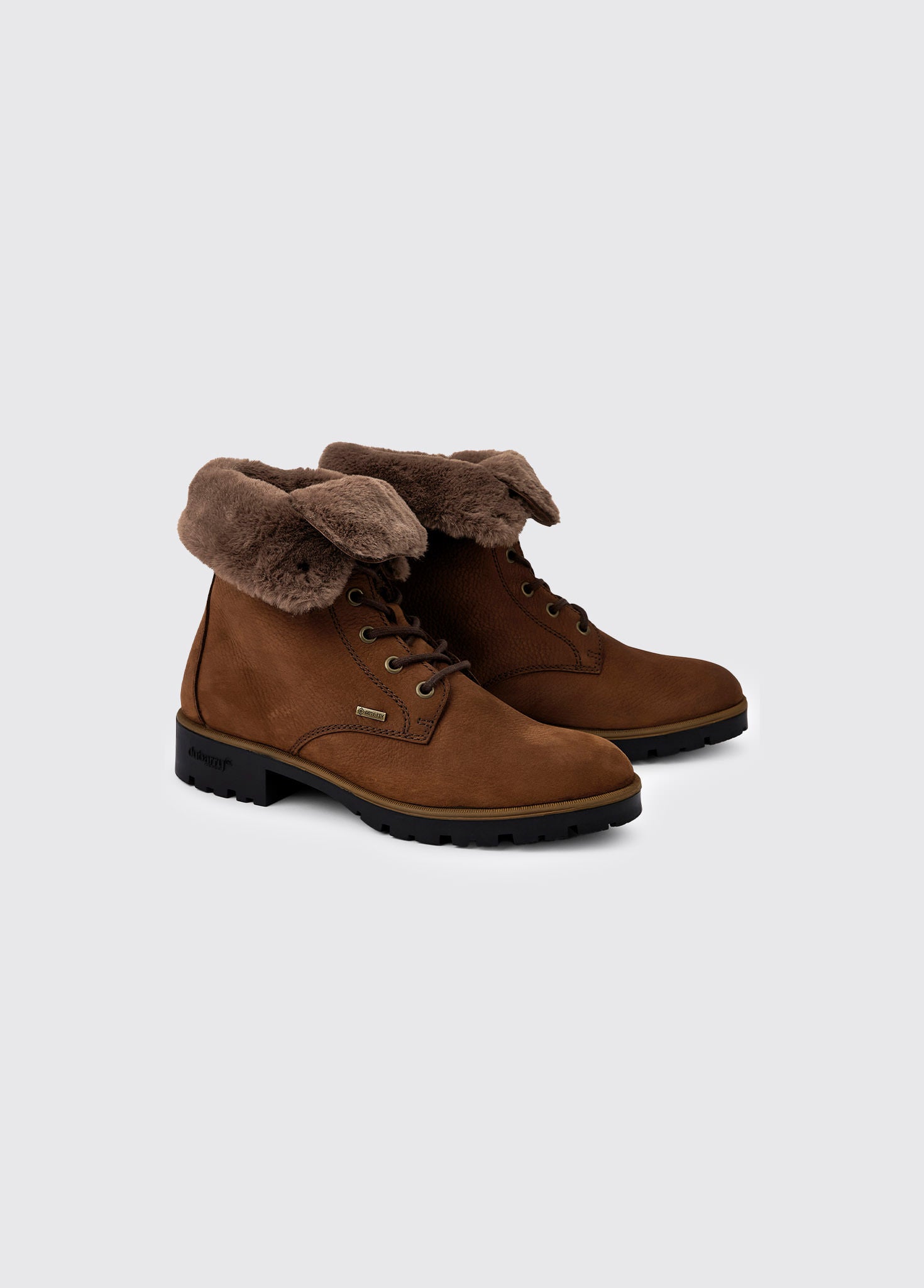 A perfect combination of cosy and rugged, these fold down ankle boots are lined with snuggly faux fur. Packed with weather resistant technology, from Dubarry's DryFast-DrySoft™ leather and GORE-TEX lining to shock-absorbing, gripping soles, they are the ideal weekend style with an edge - a great partner to Dubarry leather and wax jackets.
