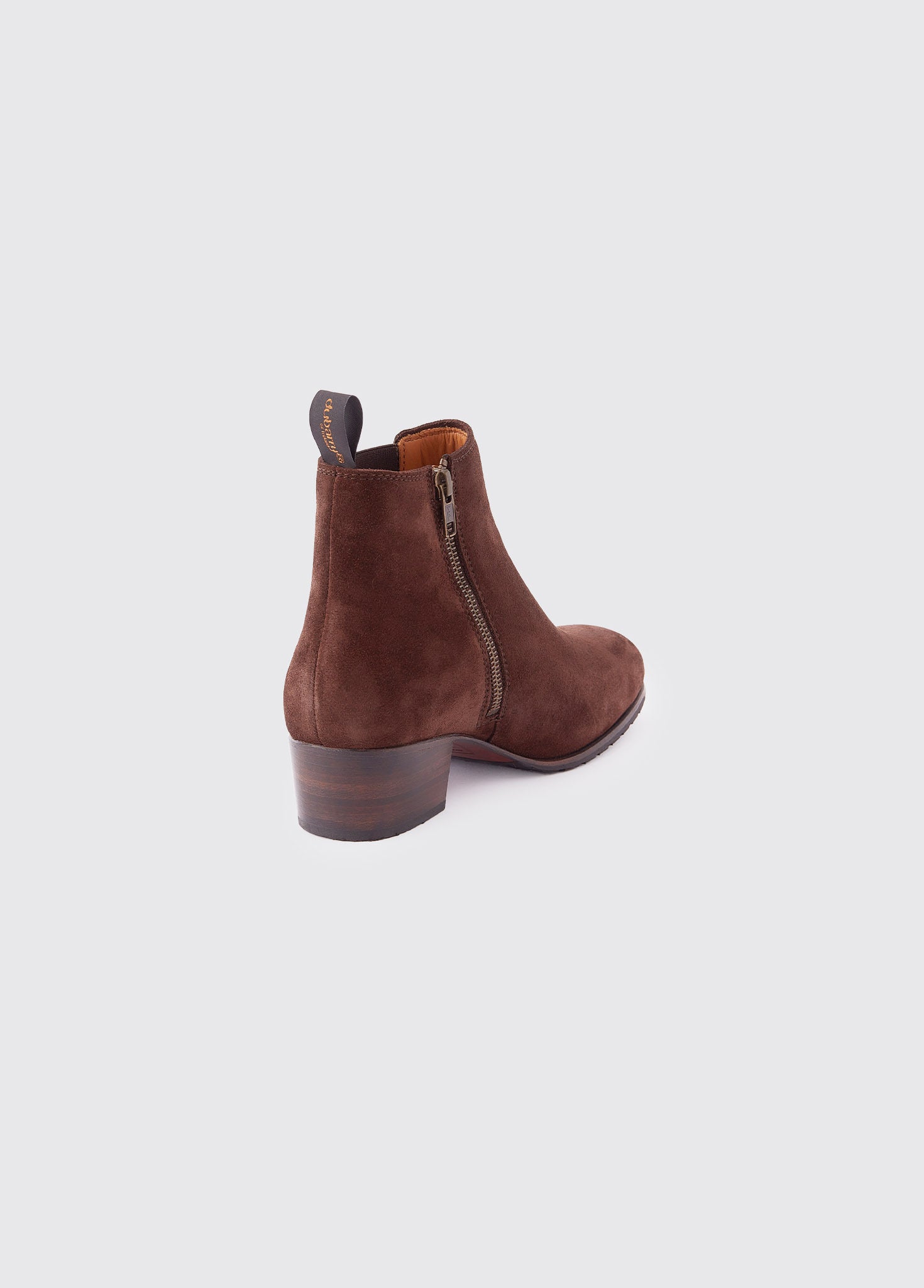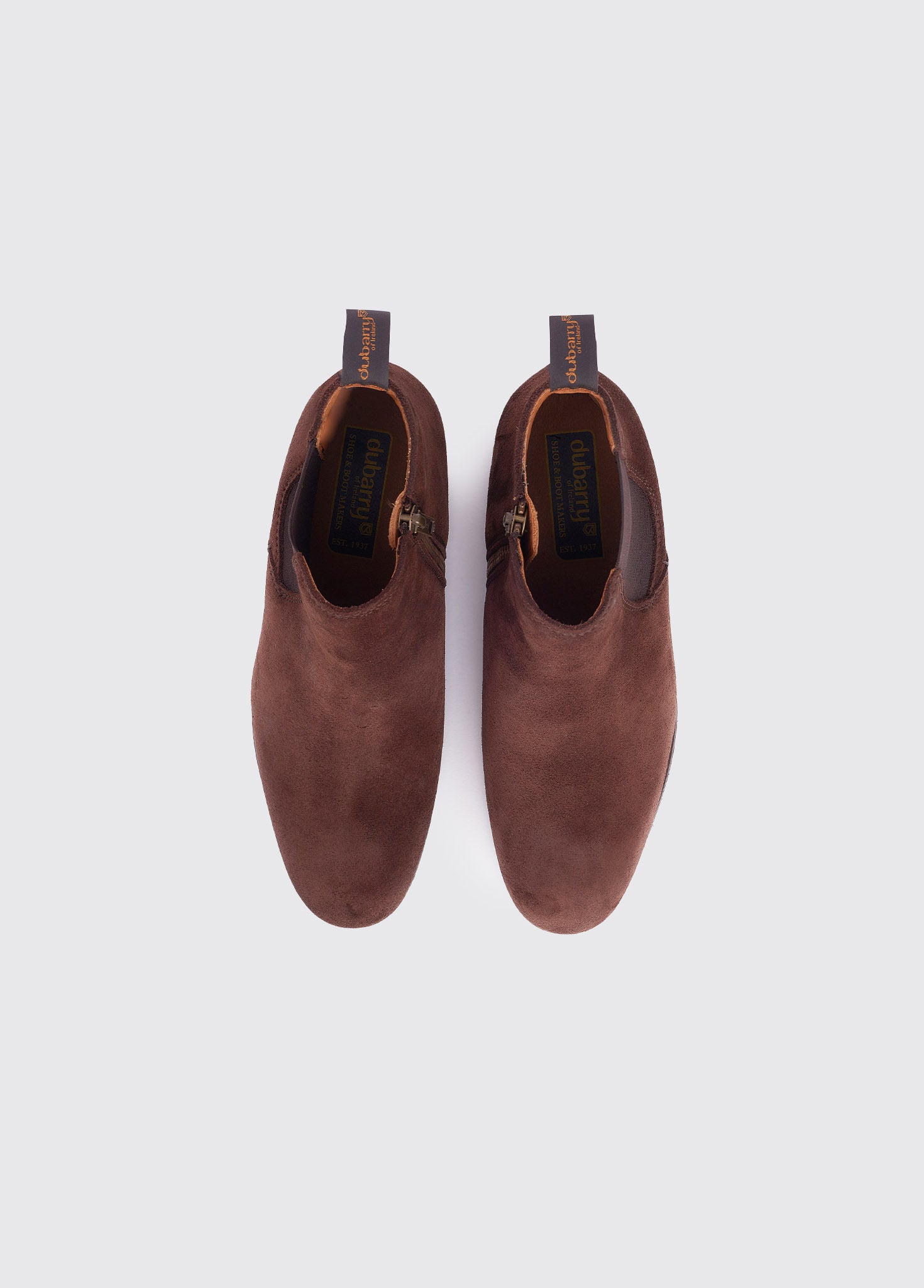 Dubarry women's heeled chelsea boot with inside zip and elasticated ankle, in genuine suede and leathers with DryFast-DrySoft™ water-resistant finish. Available in a variety of colours.