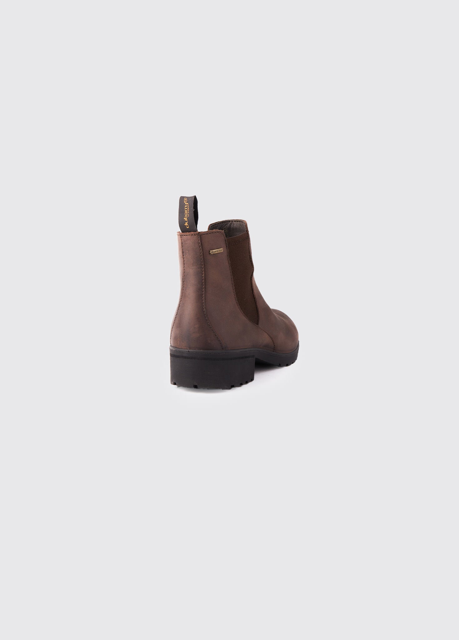 All the performance and technology of the country boot collection packed into a smart women's chelsea boot. The Dubarry Waterford is waterproof and breathable with GORE-TEX Product Technology lining and has a shock-absorbing sole with great grip, while neat elasticated panelled sides make for a snug and secure fit. Perfect for teaming with jeans, Dubarry knitwear and one of our quilted jackets or gilets.