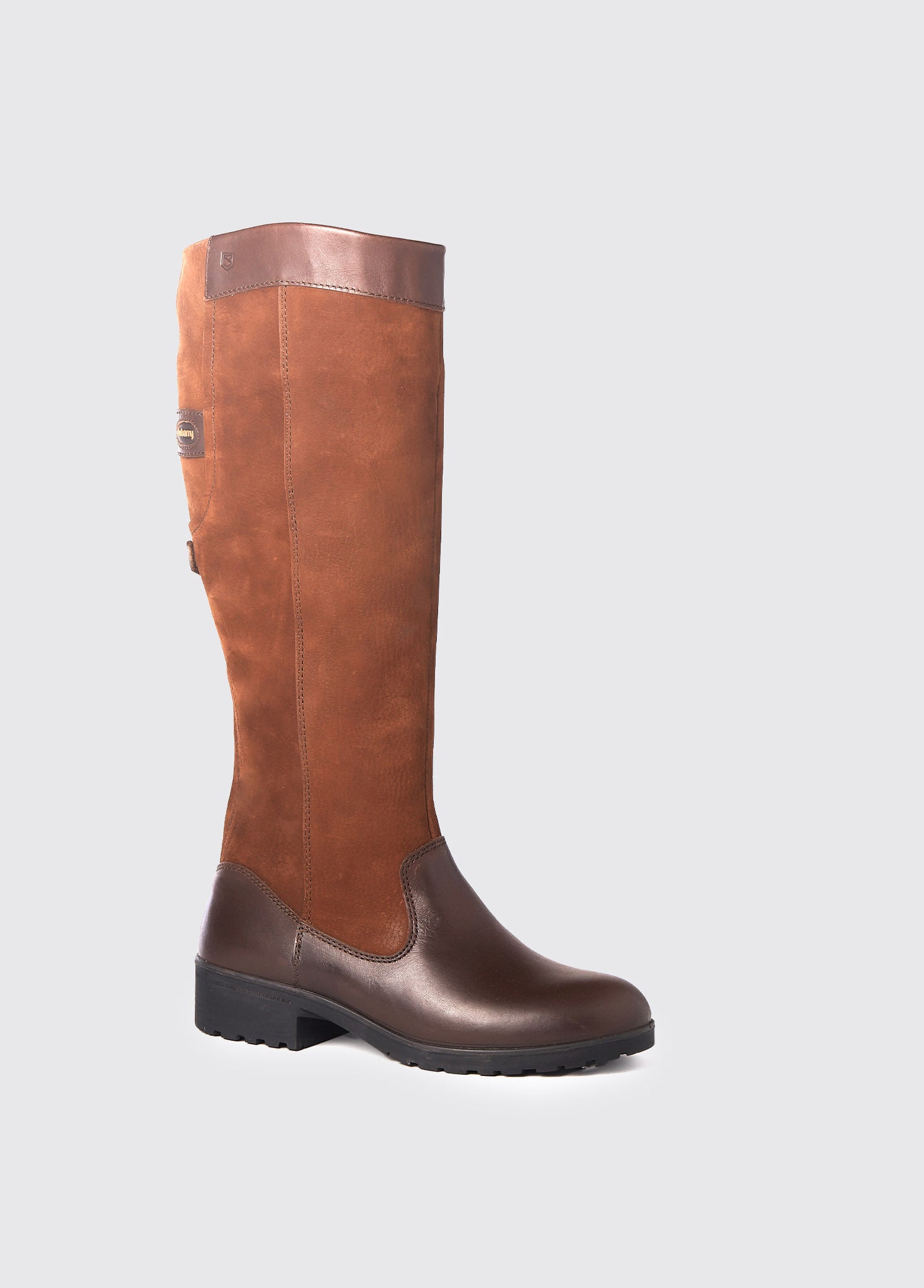 With an equestrian-inspired design, the Dubarry Clare leather country boot delivers excellent performance with the addition of extra protection on the inside leg. Warm, waterproof and breathable, with shock absorbing soles, the GORE-TEX lined boots have a flattering cut, styled low at the back of the knee, and elasticated heel panel at the rear for an easy fit. Hardy enough to be put to work on the stable yard yet smart enough to take into town.