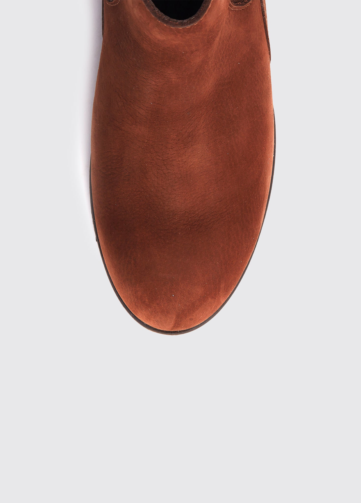 Pair of Dubarry Waterford walnut coloured leather country boots,  women's Chelsea style boot with Elasticated side gussets and heel finger pull