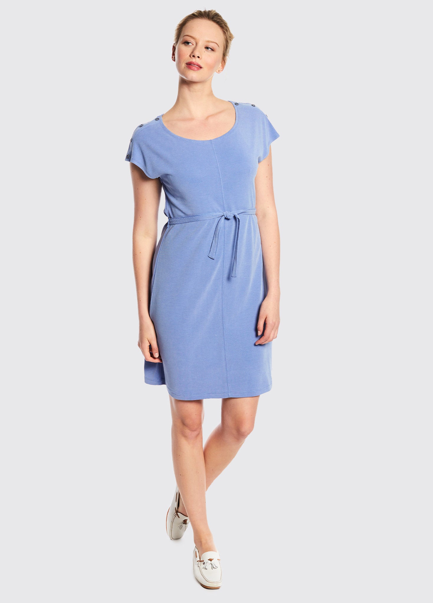 A go to summer dress which is 72% Modal fabric for a non-crease super soft feel that falls beautifully. Gently fitted with a flare shape falling just above the knee and an extended cap sleeve with button detail, the Virginia dress also has a self tie belt to adjust to your personal fit and style. Team with Dubarry Rhodes deck shoe for a simple yet sophisticated summer outfit.