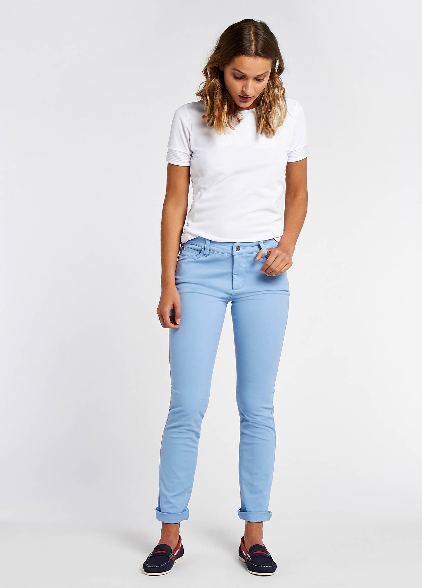 Modelled on our popular Honeysuckle jean, the Greenway is a lightweight summer alternative. Slim-fitting with flattering back pockets, dress them up for the office or take life easy and while away the weekend in comfort.