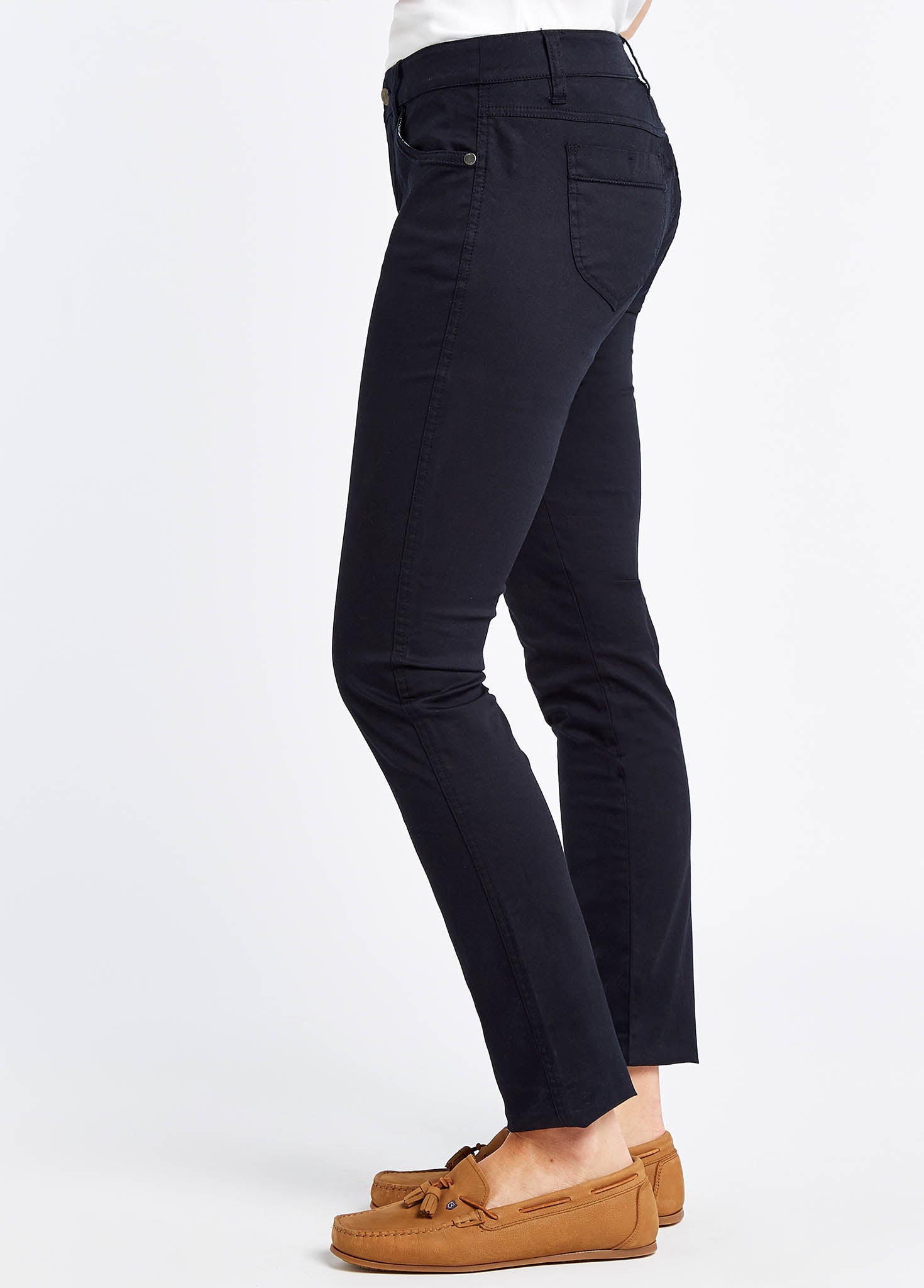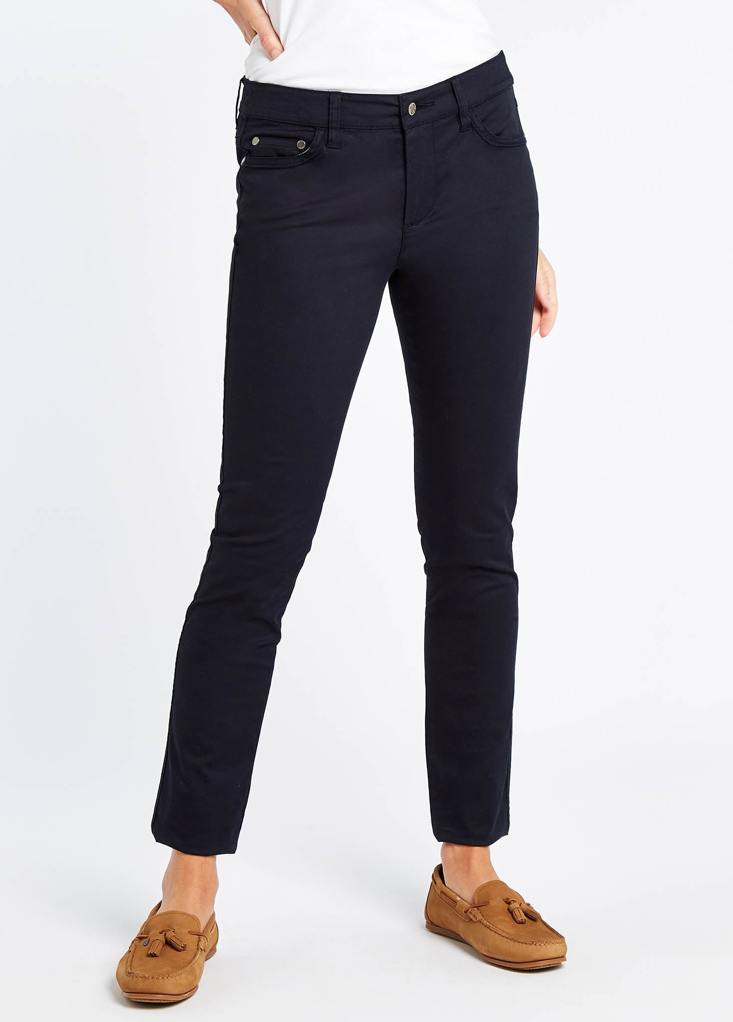 Modelled on our popular Honeysuckle jean, the Greenway is a lightweight summer alternative. Slim-fitting with flattering back pockets, dress them up for the office or take life easy and while away the weekend in comfort.