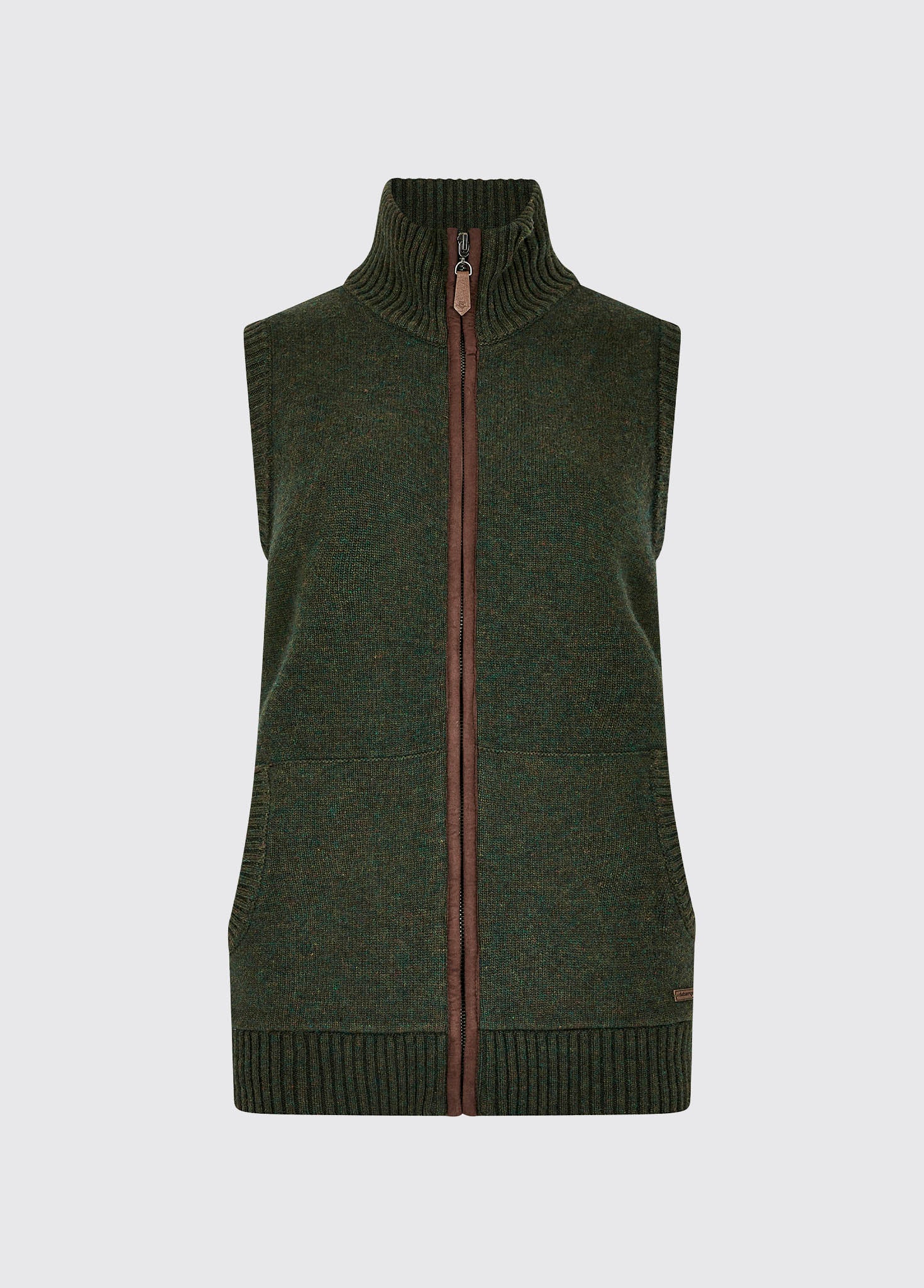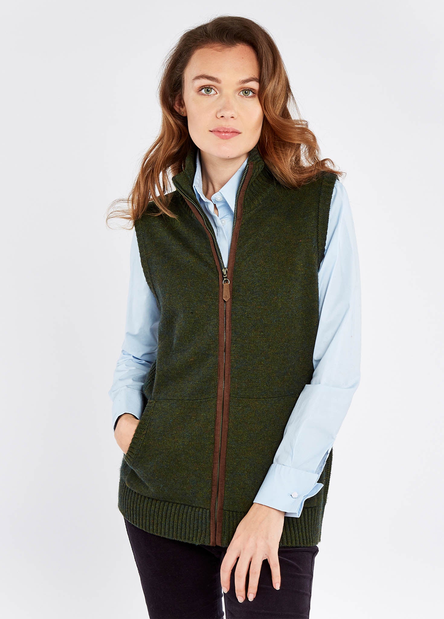 The Sheedy full zip sweater gilet is your seasonal secret weapon. Made from a wool blend that is breathable, warm and soft to the touch, and with ribbed sides for a close fit, slip it under your jacket to stay extra warm. With a smart suede trimmed zipper and a range of great colours, it also works perfectly over a Dubarry shirt on those early Autumn and Spring days.