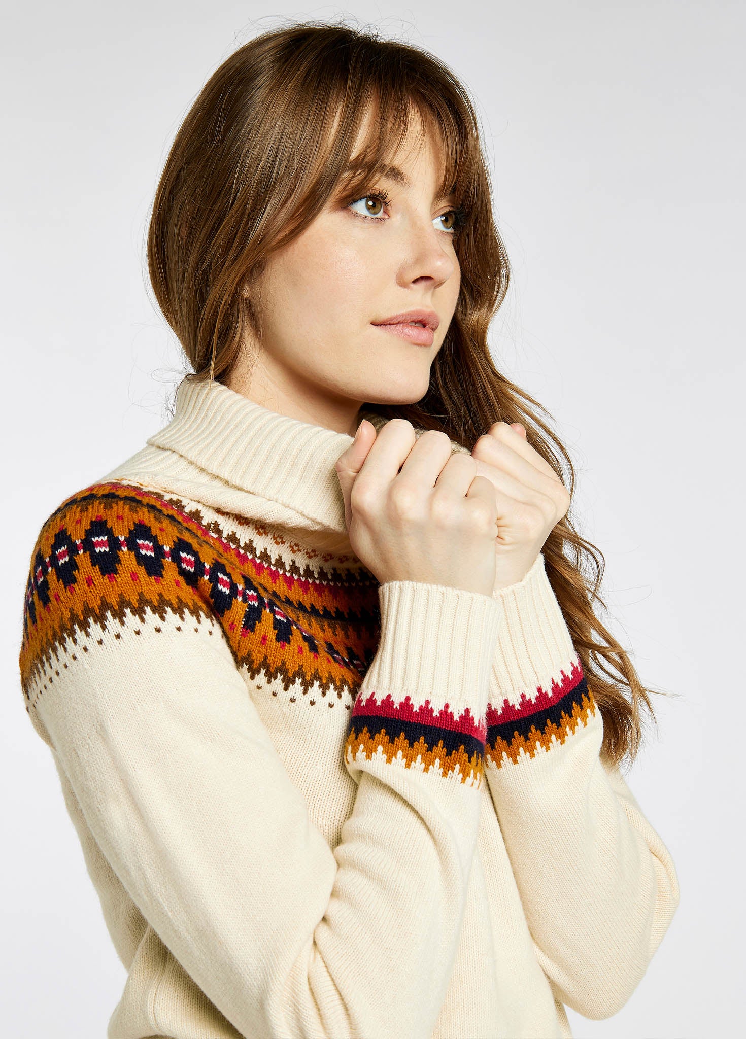 There is a traditional charm about our Riverdale sweater that appeals to all ages. A beautiful Fair Isle pattern that evokes thoughts of blustery beach walks and wintery firesides no matter what your plans are. Weighty yet breathable and made with a combination yarn that avoids itchiness and pilling, this is a real winter warmer that will be pulled out, and admired, year on year