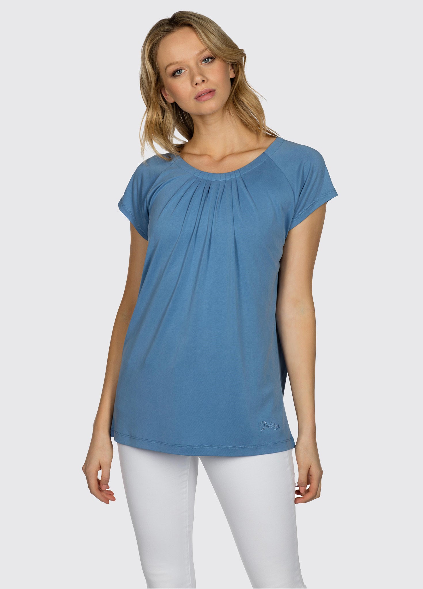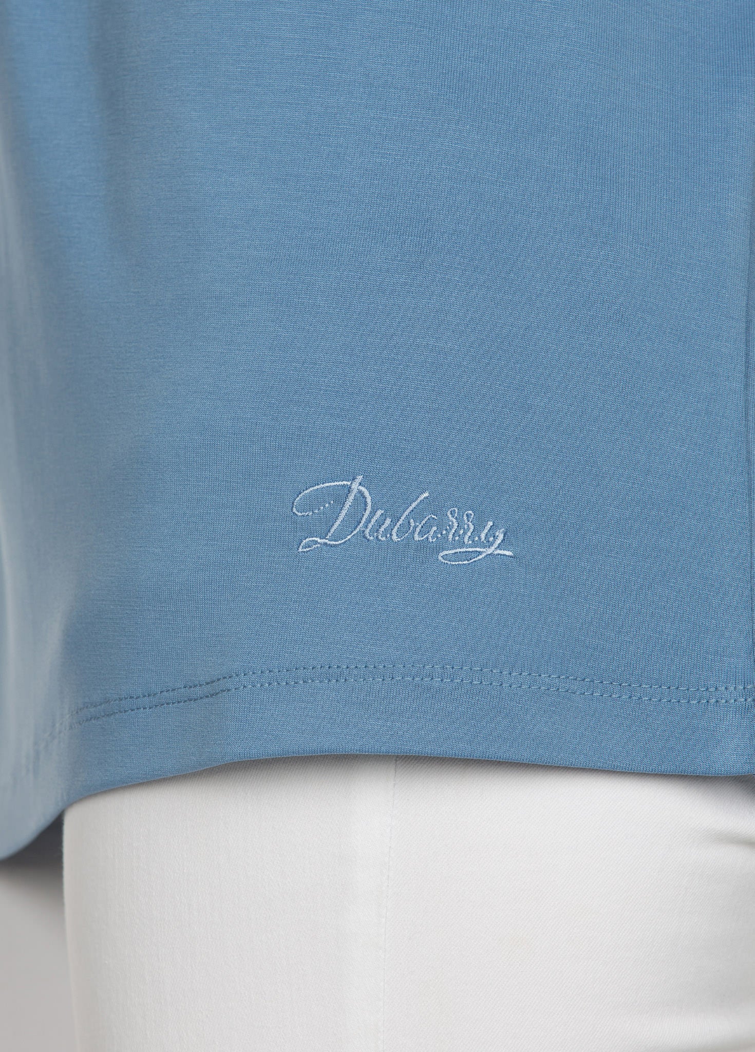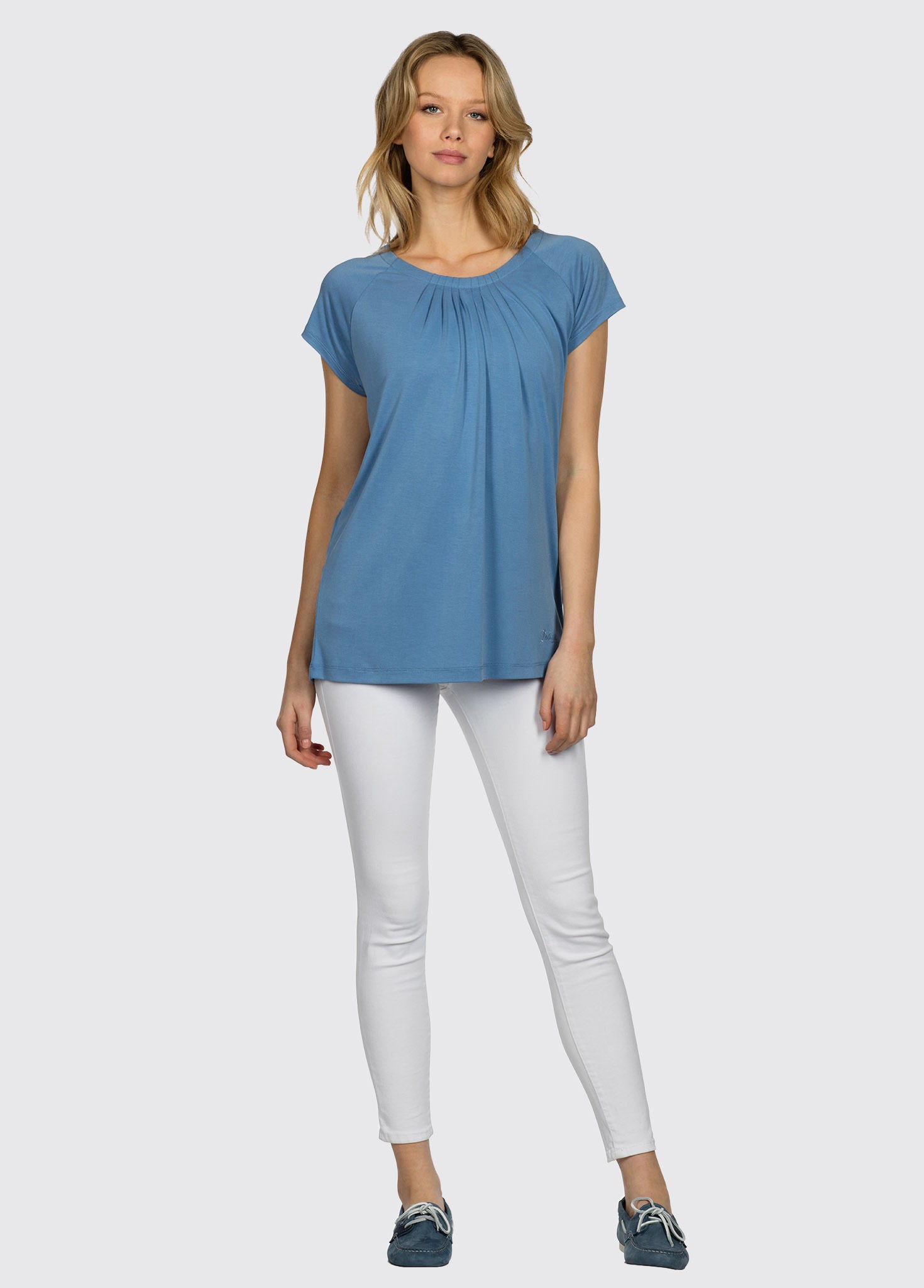 Dubarry's Quilty ladies' top is a practical wardrobe staple, a perfect accompaniment to Dubarry sailing clothing and Dubarry country clothing. This ladies' fashion piece looks great with skinny jeans, ladies' shorts or Dubarry skirts for women. Super soft scoop neck, capped sleeve jersey top with pleat detailing around the neckline. Luxurious to the touch and the substantial fabric weight providing a beautiful drape.