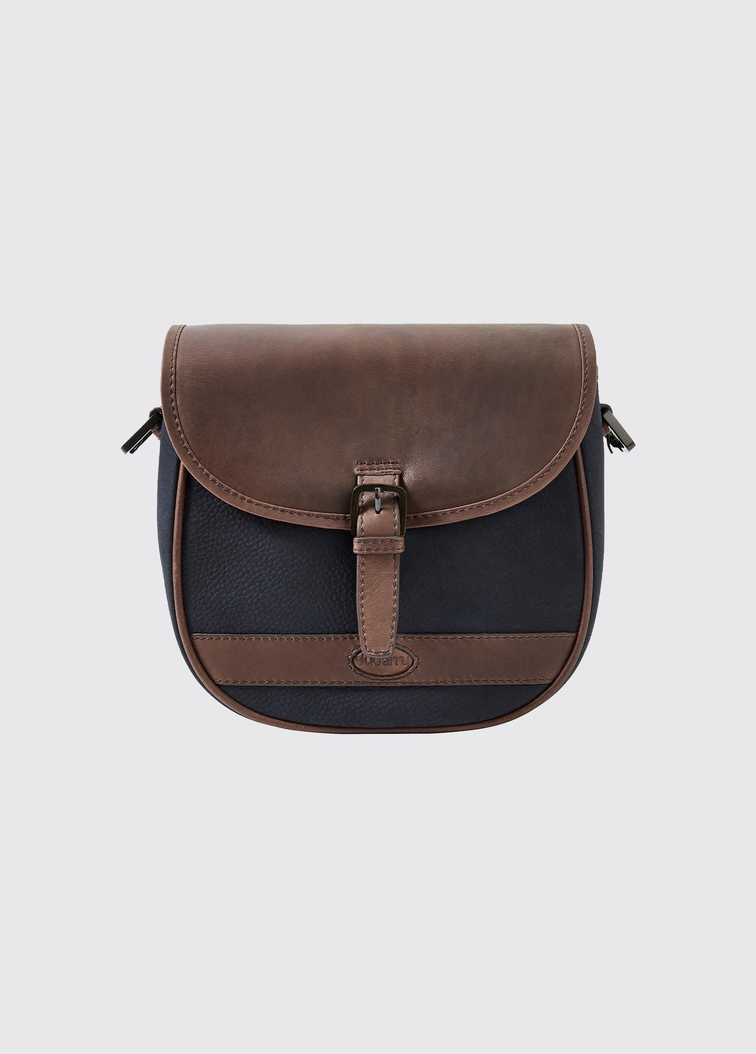 Clara Ladies Leather Saddle bag - Navy/Brown