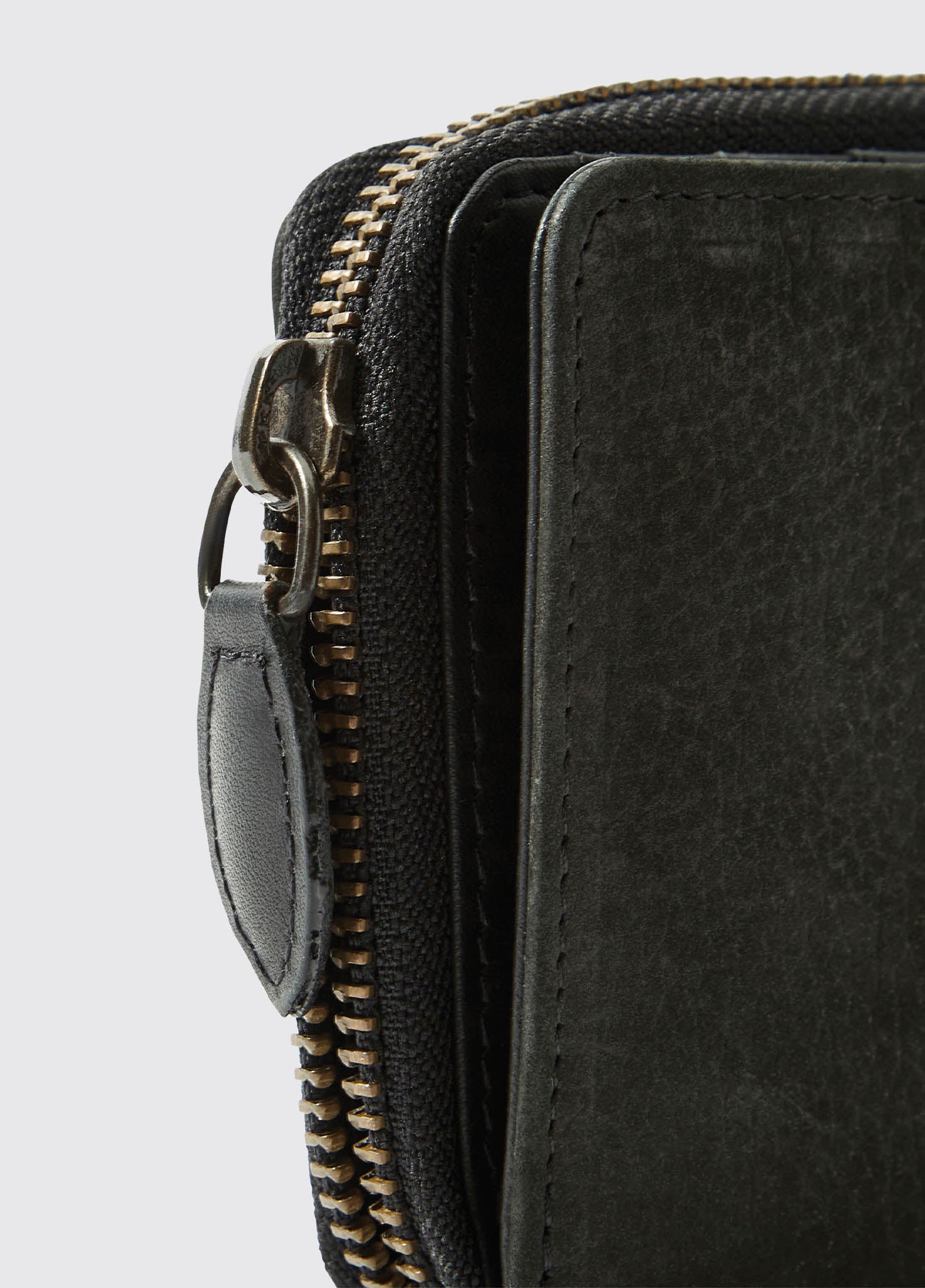 Leather wallet with zip closure. Includes zipped coin purse, note pocket, credit card slots and ID window. Available in a choice of colours.