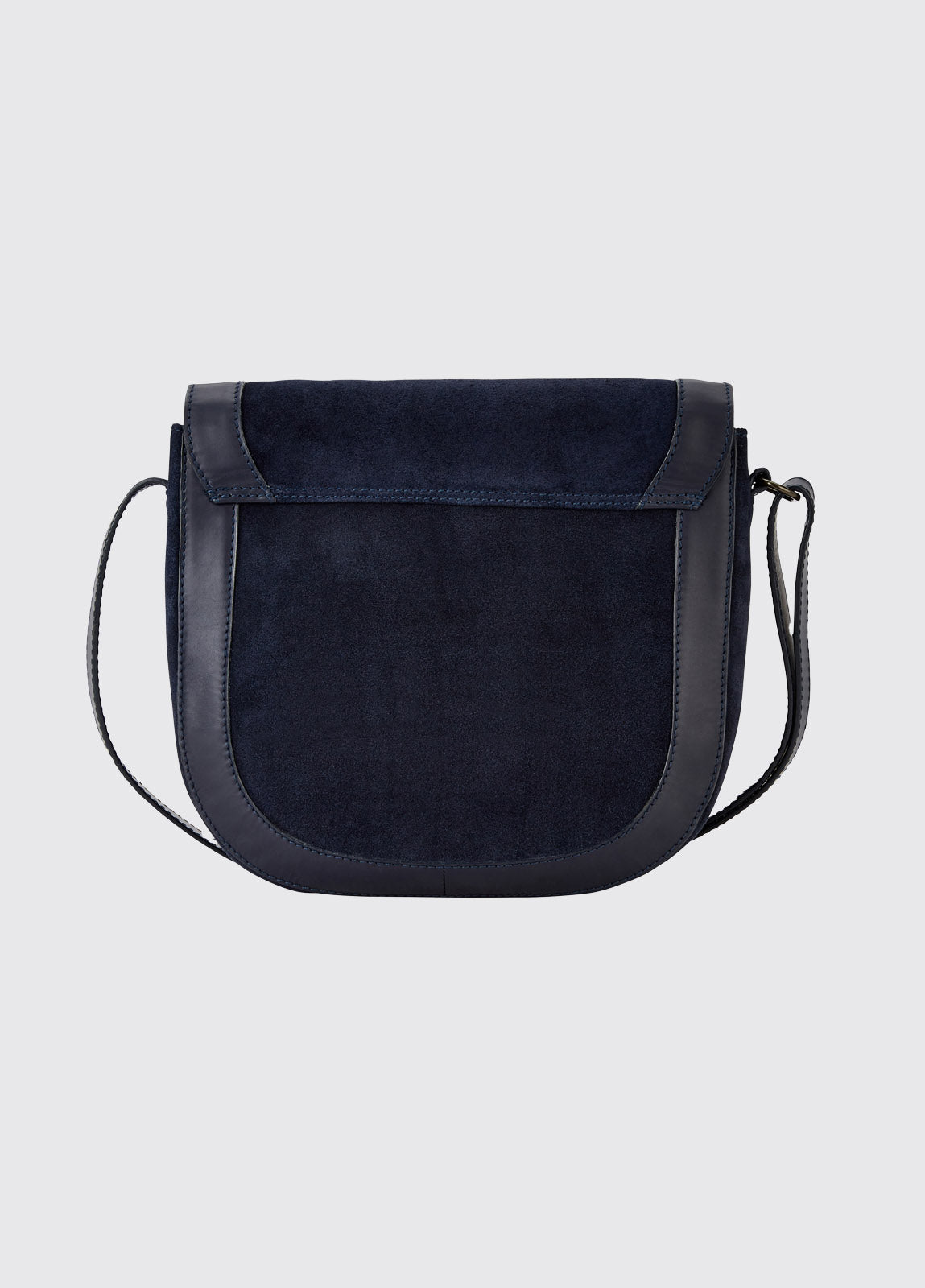 Suede cross body saddle bag with adjustable strap and suede tassel.