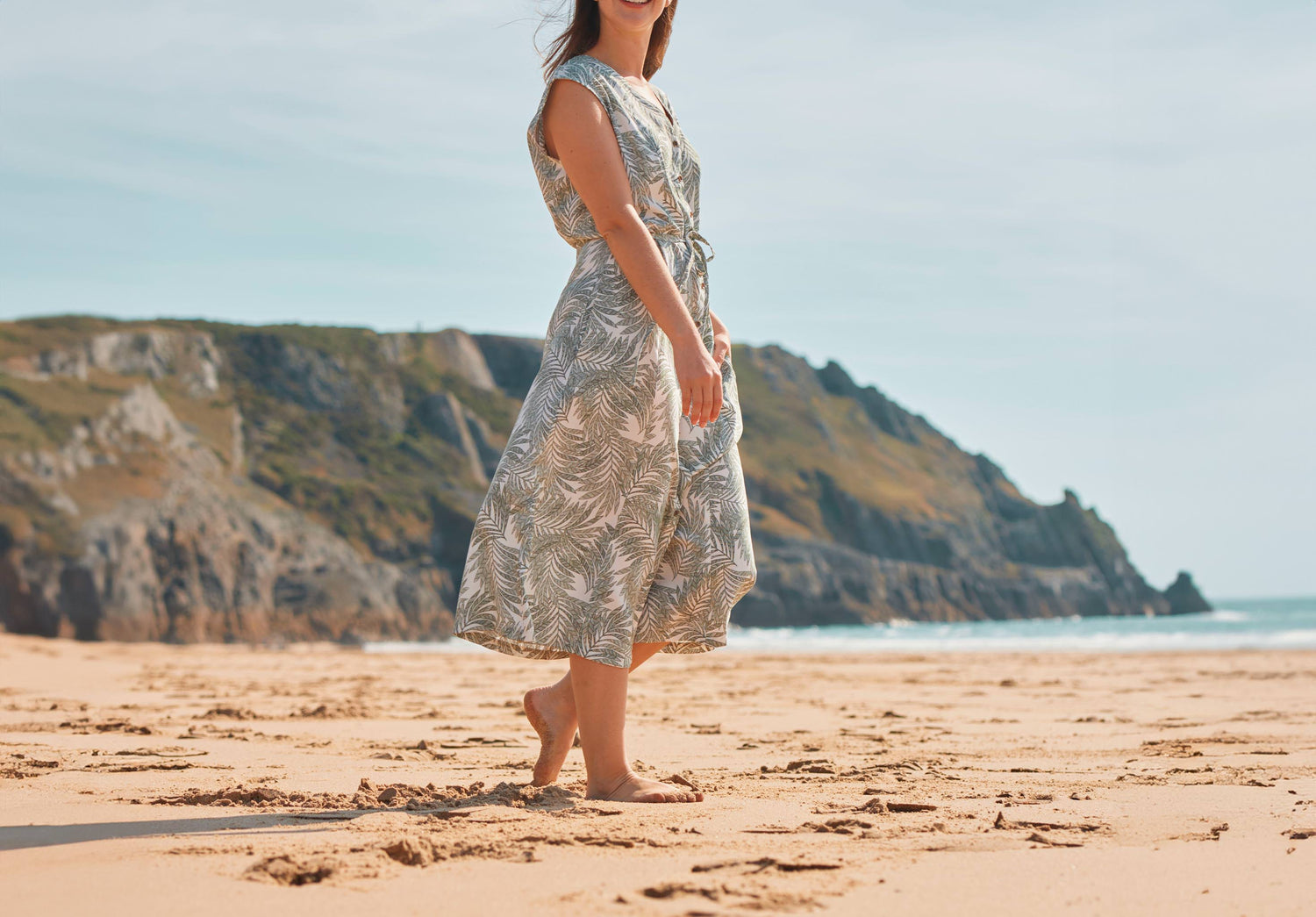Designed in a unique Dubarry print, our Wildfire dress is a perfect day-to-night summer option. In a soft, crease-resistant fabric the flowing style is a super work day option, easily dressed up for an evening outing afterwards. The crisp, leafy fabric flows as happily at a summer garden party or padding along a sandy seas shore. Decisions, decisions!
