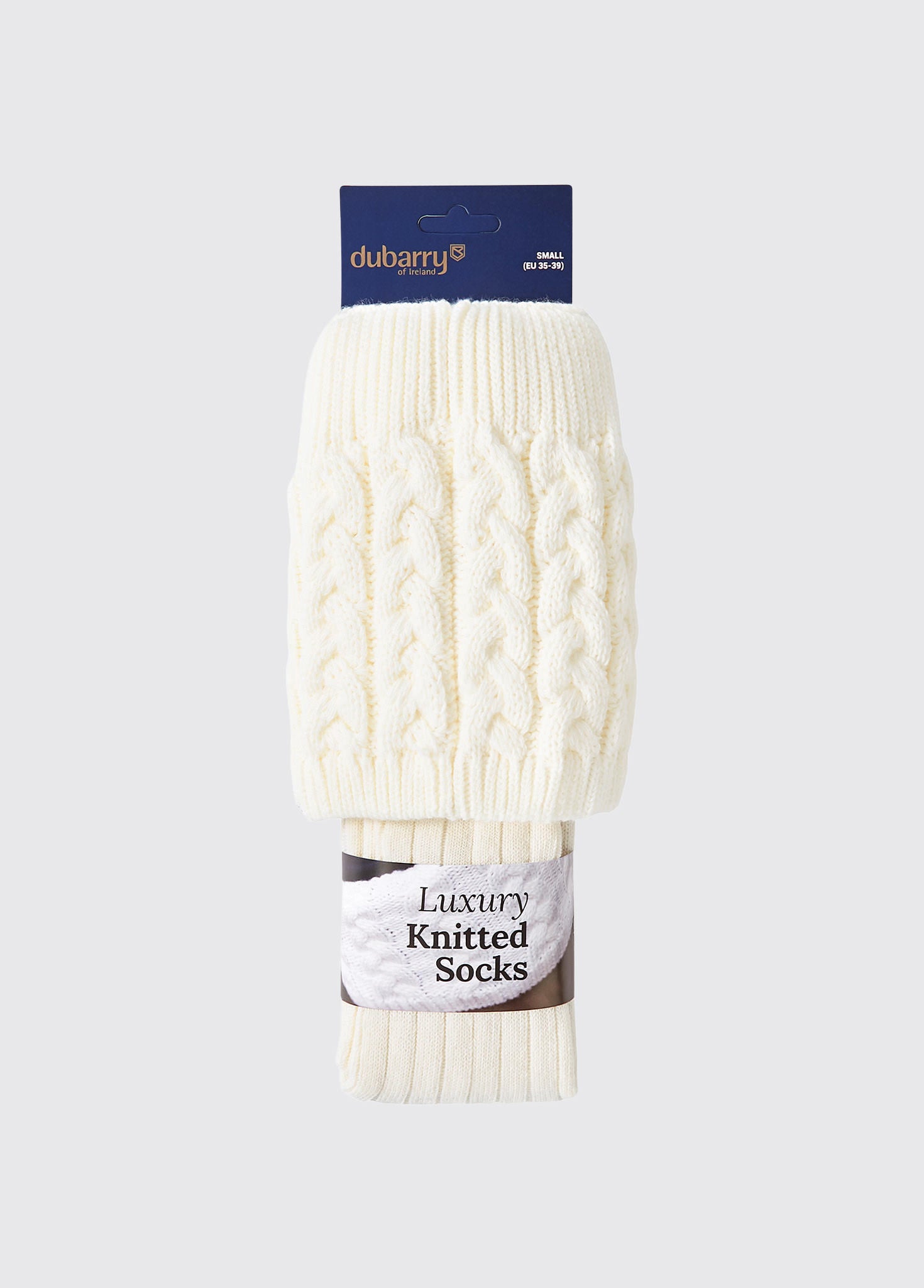 Cotton mix long socks with fold down cable knit decorative top for country boots. Machine washable on wool cycle up to 40ºc