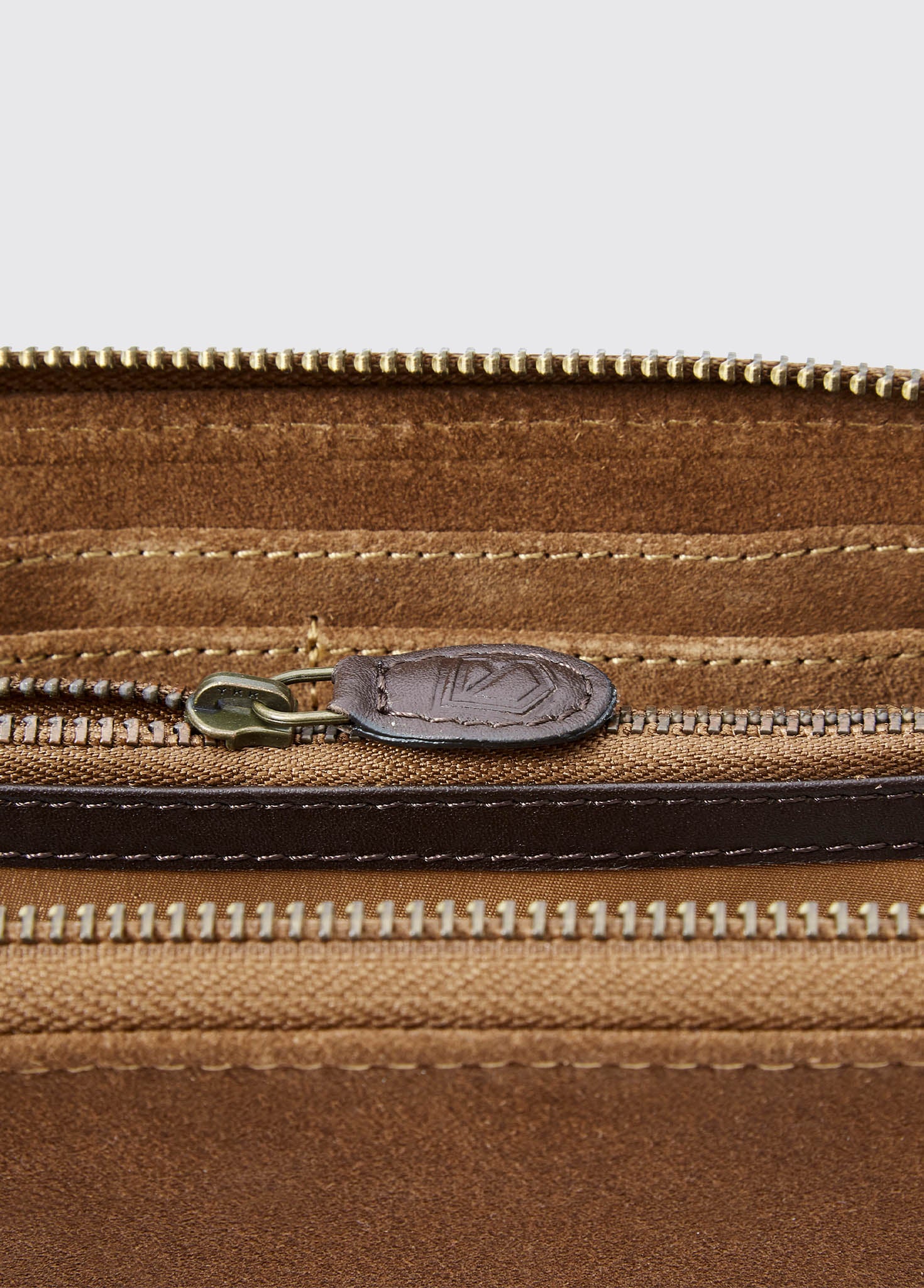 Leather trimmed suede purse with tassel detail and subtle Dubarry branding.