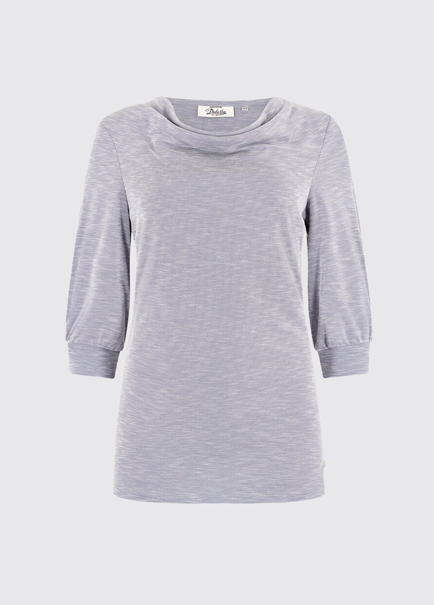 The Ballynote features a cowl neckline and gathered ¾ length sleeves with banded cuffs, creating an easy to wear top with an elegant feel. The heavier weight Modal polyester mix fabric has softness and quality that resists creasing. Perfect for spring days worn with Dubarry Killybeg chino and Dubarry Elba XT moccasin.
