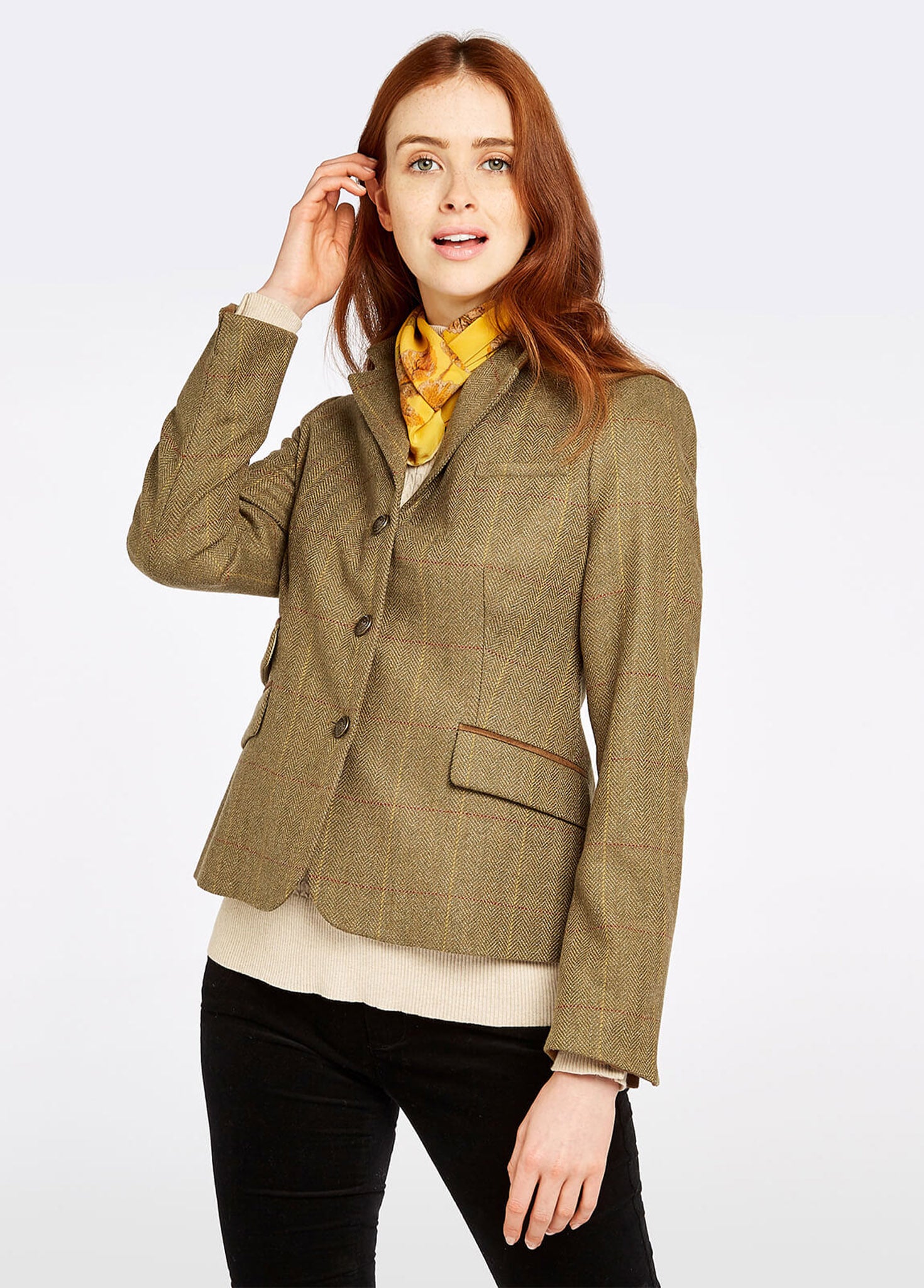 The Buttercup is a wonderfully useful jacket with a short, equestrian inspired shape giving a neat silhouette. A variety of striking 100% wool tweeds, with eye-catching buttons, work seamlessly over the Dubarry range of tailored shirts, suiting both workwear and country pursuits alike. Team with jeans, knitwear and Galway country boots for instant added finesse or a Dubarry tweed skirt and Limerick boots to complete a sophisticated combination.