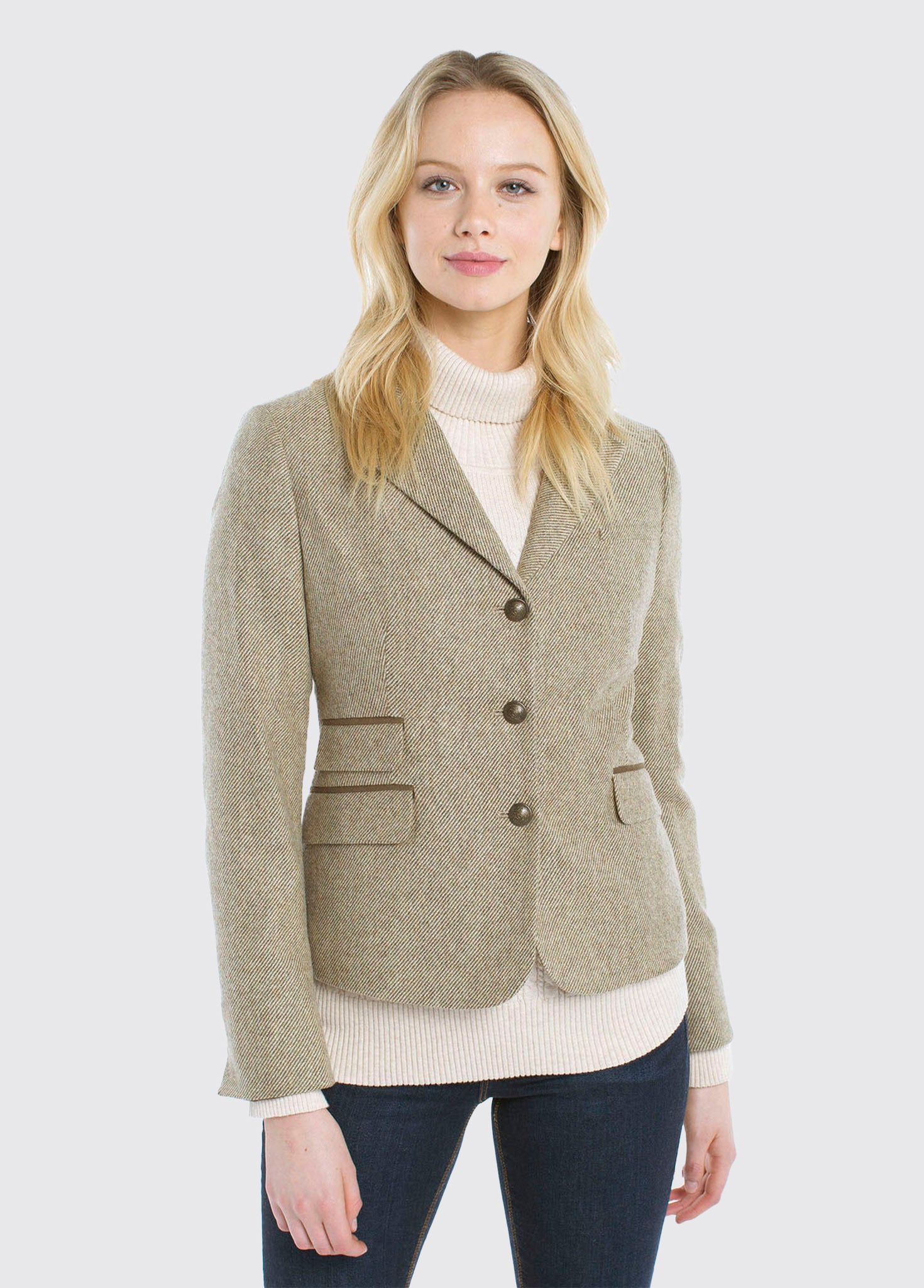 The Buttercup is a wonderfully useful jacket with a short, equestrian inspired shape giving a neat silhouette. A variety of striking 100% wool tweeds, with eye-catching buttons, work seamlessly over the Dubarry range of tailored shirts, suiting both workwear and country pursuits alike. Team with jeans, knitwear and Galway country boots for instant added finesse or a Dubarry tweed skirt and Limerick boots to complete a sophisticated combination.