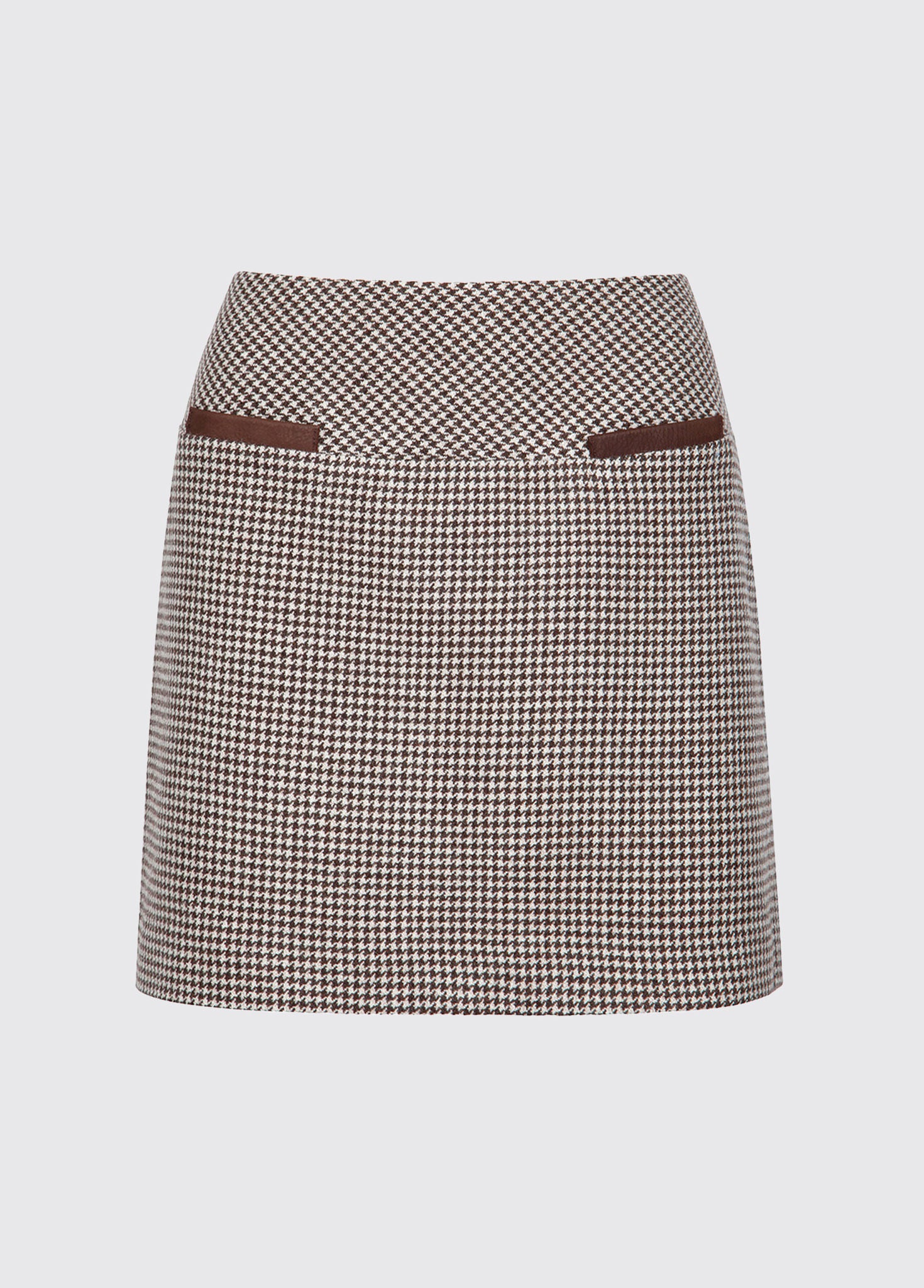 The Clover tweed mini skirt with stylish leather trim front pockets to give a sharpened fitted look to your country attire. The tweed skirt can be worn as part of your country style with a womens blouse and Dubarry tweed waistcoat or tweed blazer.