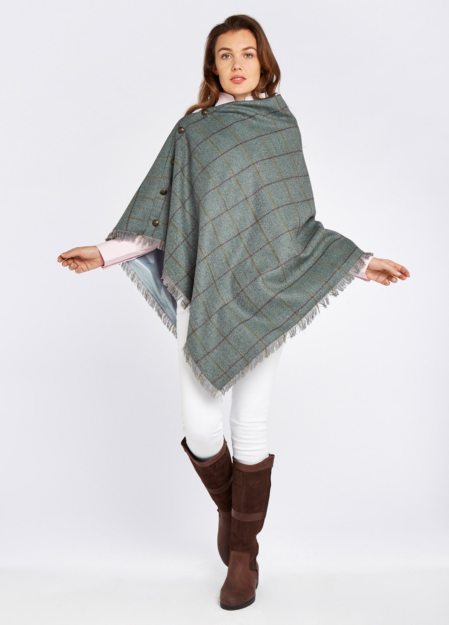 The tweed that should be in every Woman's wardrobe. Dubarry's Hazelwood poncho is a super versatile and comfortable piece which you will find yourself in again and again. Cosy Teflon coated 100% wool drapes elegantly, fastened to one side with smart brass coloured buttons and the one-size-fits-all relaxed style feels as at home at the races as in town or the local pub.