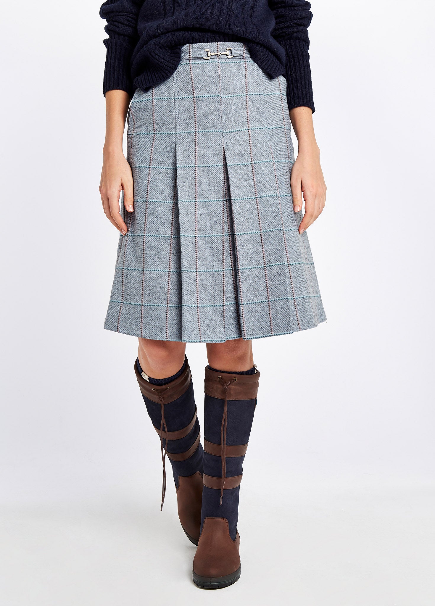 Classic style for modern women, the Spruce is a flattering knee-length skirt made from 100% Pure New Wool. Taking its inspiration from the equestrian world, the Spruce adds a sophisticated touch to your race day outfit, but will be just as eye-catching in the shooting field and about the office. The pleated A-line shape works brilliantly with Dubarry country boots and knitwear.