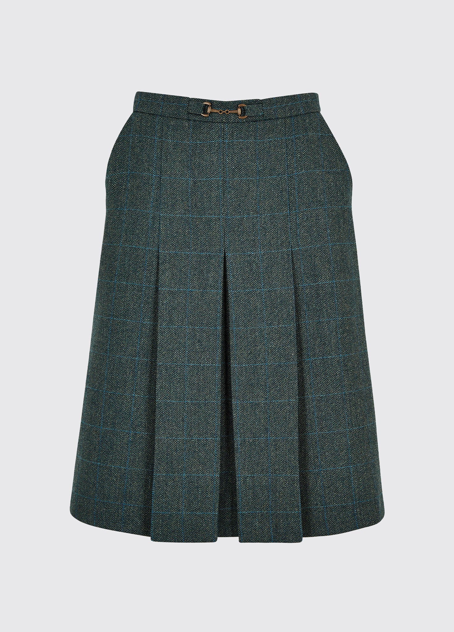 Classic style for modern women, the Spruce is a flattering knee-length skirt made from 100% Pure New Wool. Taking its inspiration from the equestrian world, the Spruce adds a sophisticated touch to your race day outfit, but will be just as eye-catching in the shooting field and about the office. The pleated A-line shape works brilliantly with Dubarry country boots and knitwear.