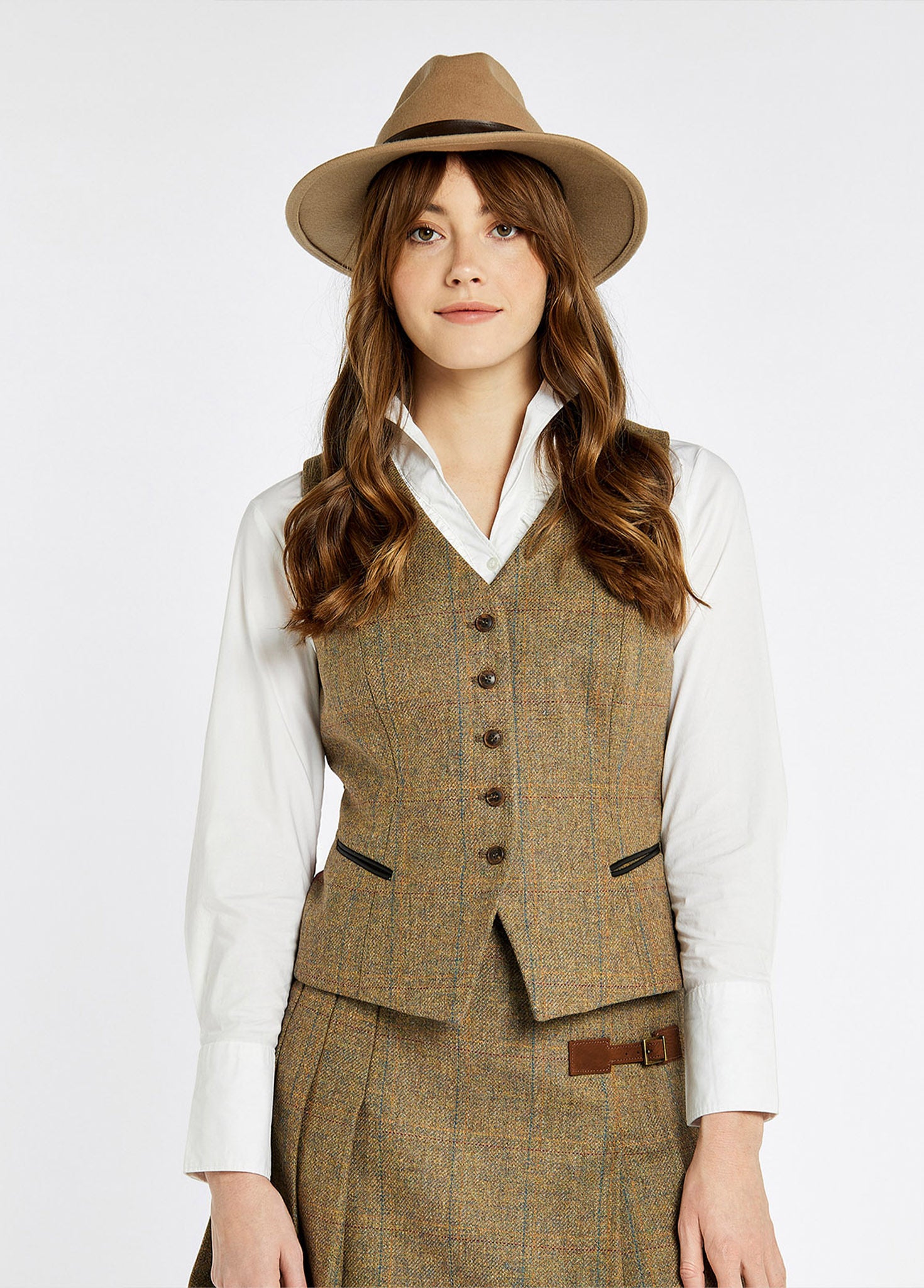 Women’s fitted tweed waistcoat.