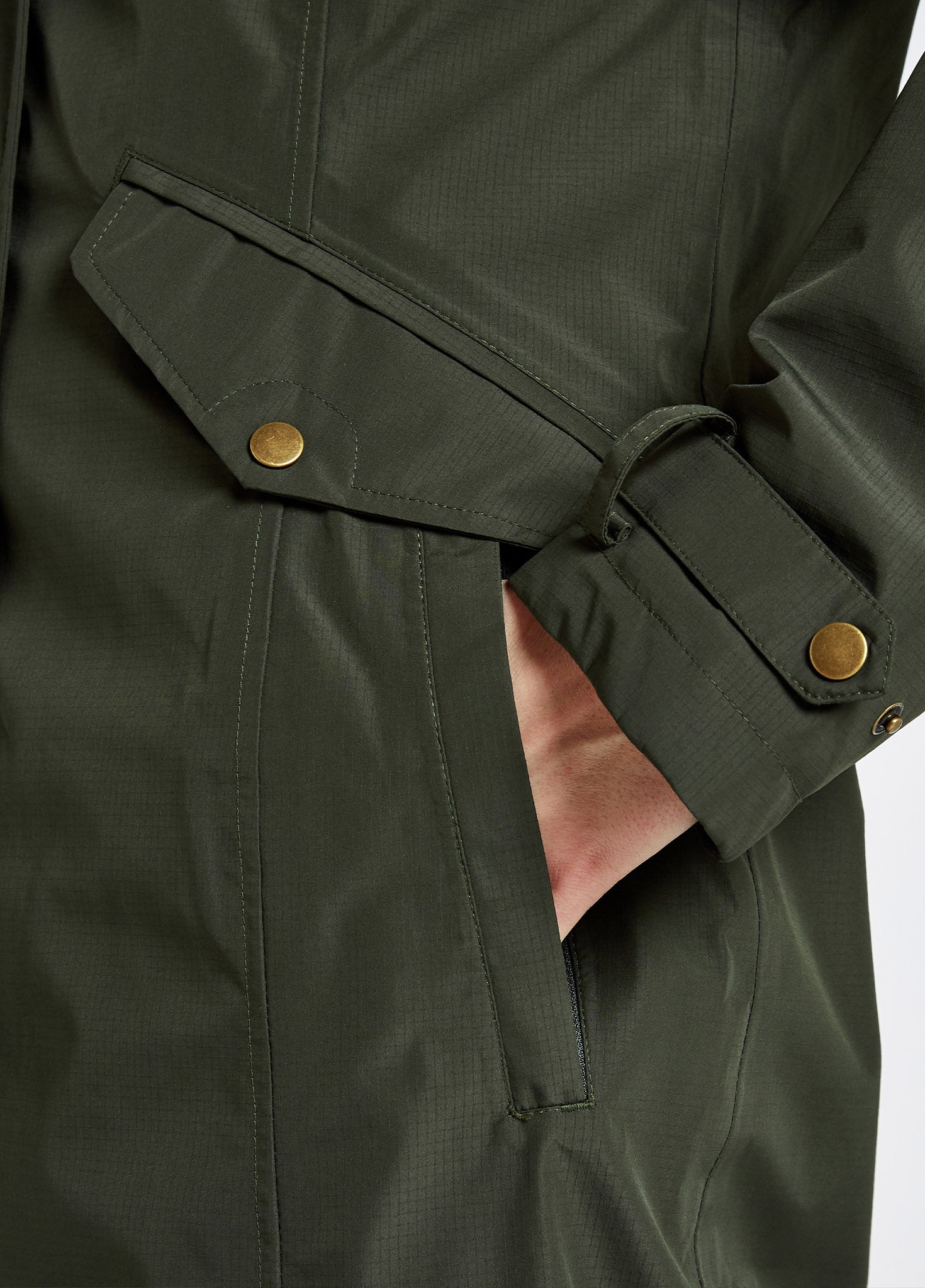 Alderford Ladies Long-line Waterproof Coat in Pesto