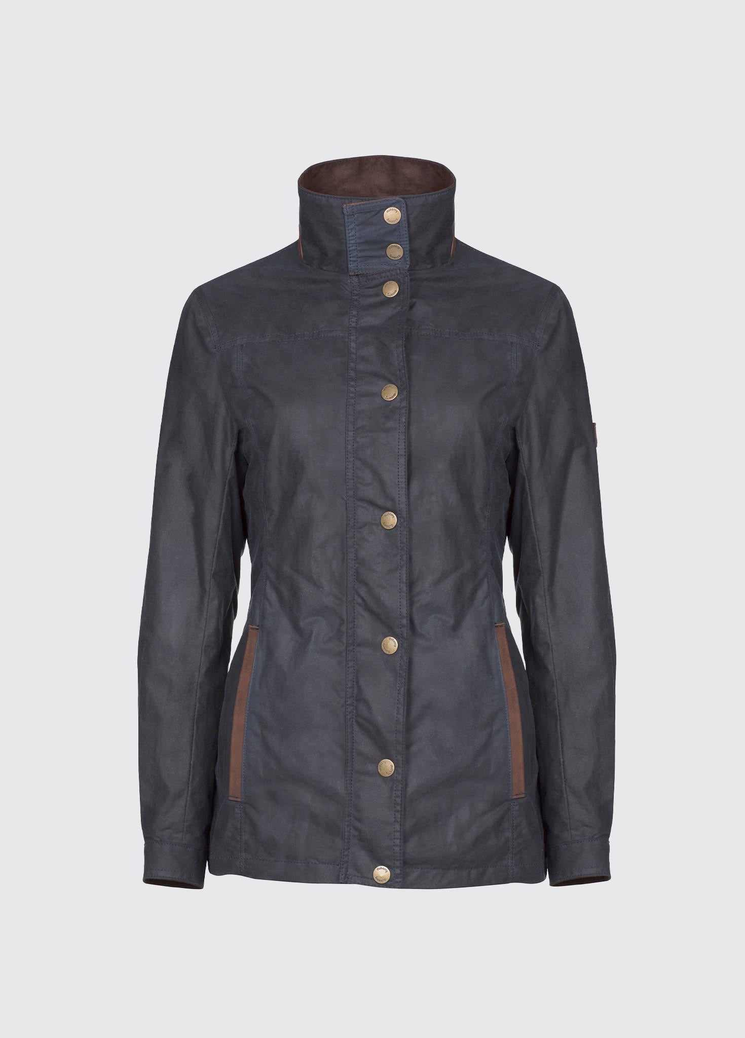 The waxed cotton Mountrath is a warm winter jacket with PrimaLoft fill and water repellent finish. Leather trim and branded stud poppers add to the polish while the stud-fastened faux suede collar and gently tailored shape adds a slick urban flair to this comfortable country style.