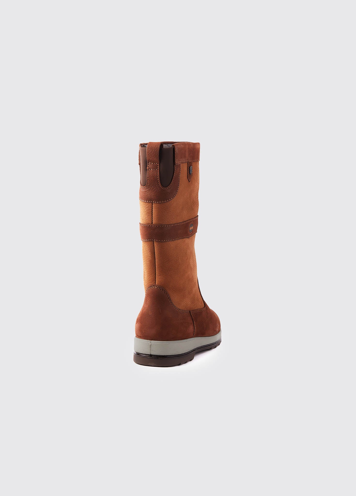 Luxuriously comfortable and resolutely practical, our unique all-leather Ultima boots give you amazing grip on slippery decks and complete freedom of movement. Why leather? Not only is it waterproof and fully breathable, but as the builders of Ireland’s traditional curraghs have known for centuries, it becomes incredibly strong and supple when soaked in salt water. Made from the highest quality leather with Dubarry’s award-winning NonSlip-NonMarking™ outsole, expandable Lycra® for a snug fit and GORE-TEX Product Technology, they’ll keep your feet dry and agile in any weather. The ExtraFit™ option is engineered to accommodate muscular calves and higher insteps as well as wider feet.