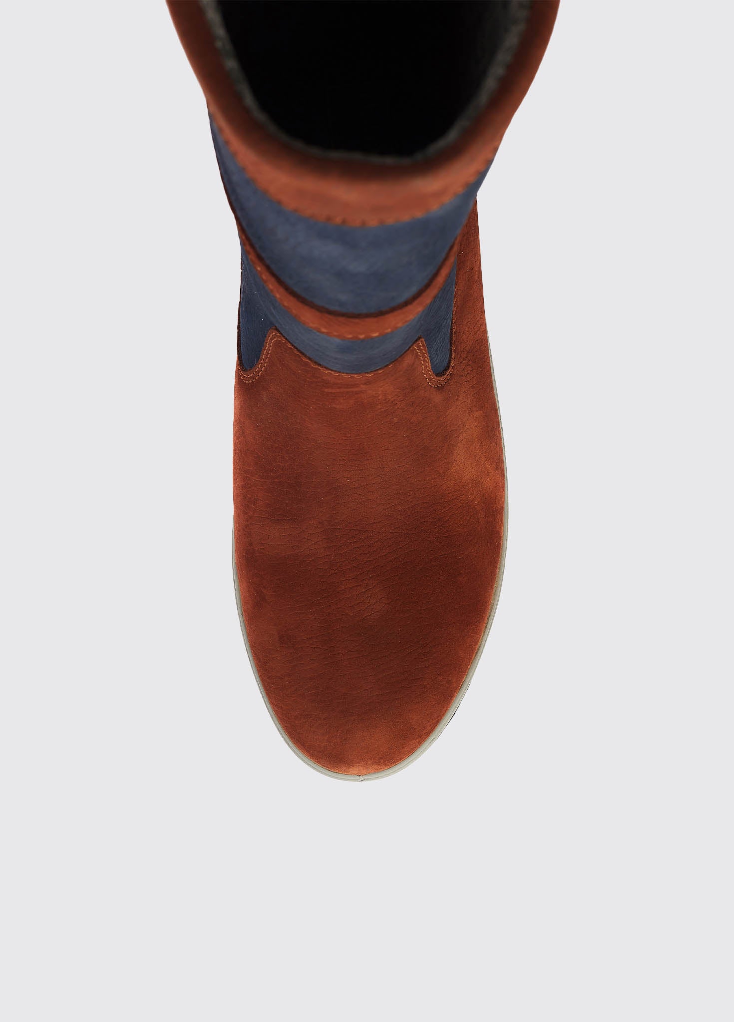 Luxuriously comfortable and resolutely practical, our unique all-leather Ultima boots give you amazing grip on slippery decks and complete freedom of movement. Why leather? Not only is it waterproof and fully breathable, but as the builders of Ireland’s traditional curraghs have known for centuries, it becomes incredibly strong and supple when soaked in salt water. Made from the highest quality leather with Dubarry’s award-winning NonSlip-NonMarking™ outsole, expandable Lycra for a snug fit and Gore-Tex insulation, they will keep your feet dry, cosy and agile in any weather. The ExtraFit™ option is engineered to accommodate muscular calves and higher insteps as well as wider feet.