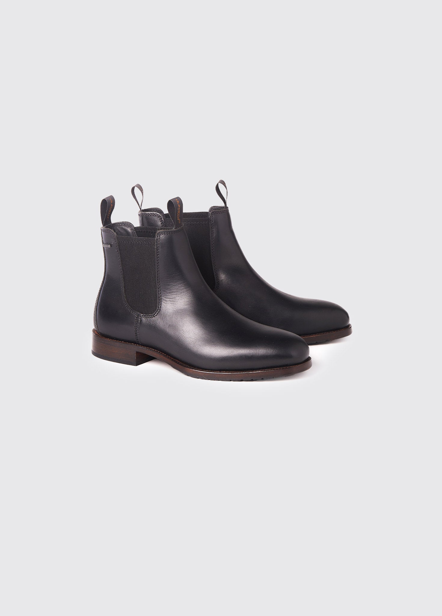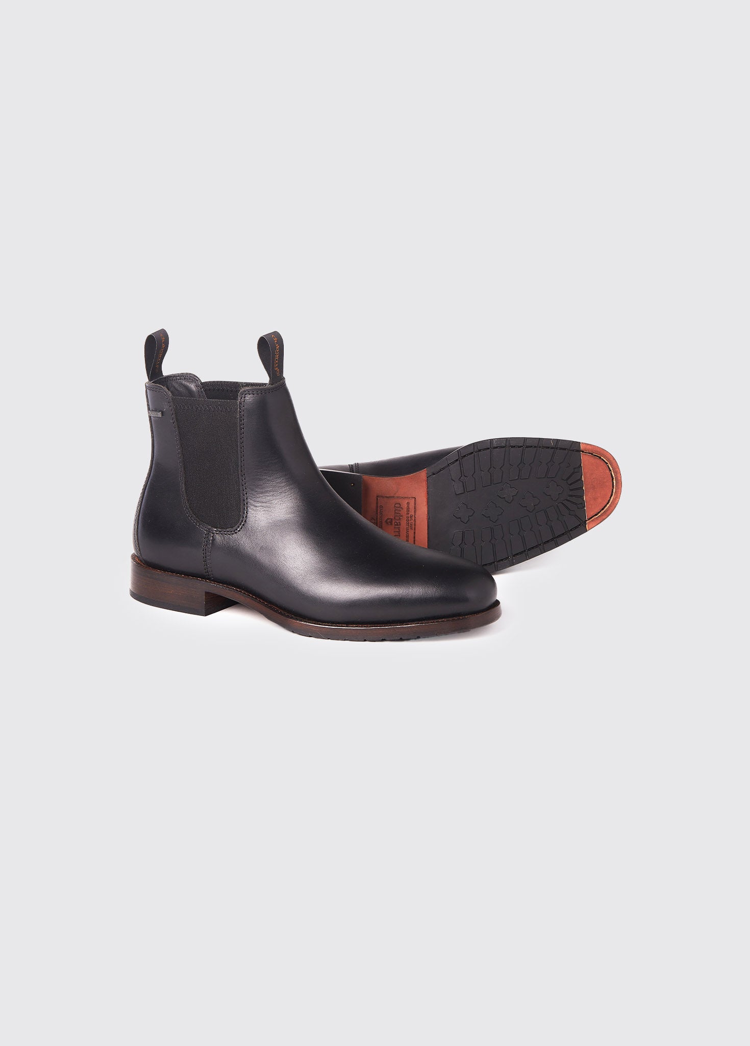 A pair of Dubarry Kerry Chelsea ankle boots for men, black leather with elasticated side gussets with front and heel finger pulls