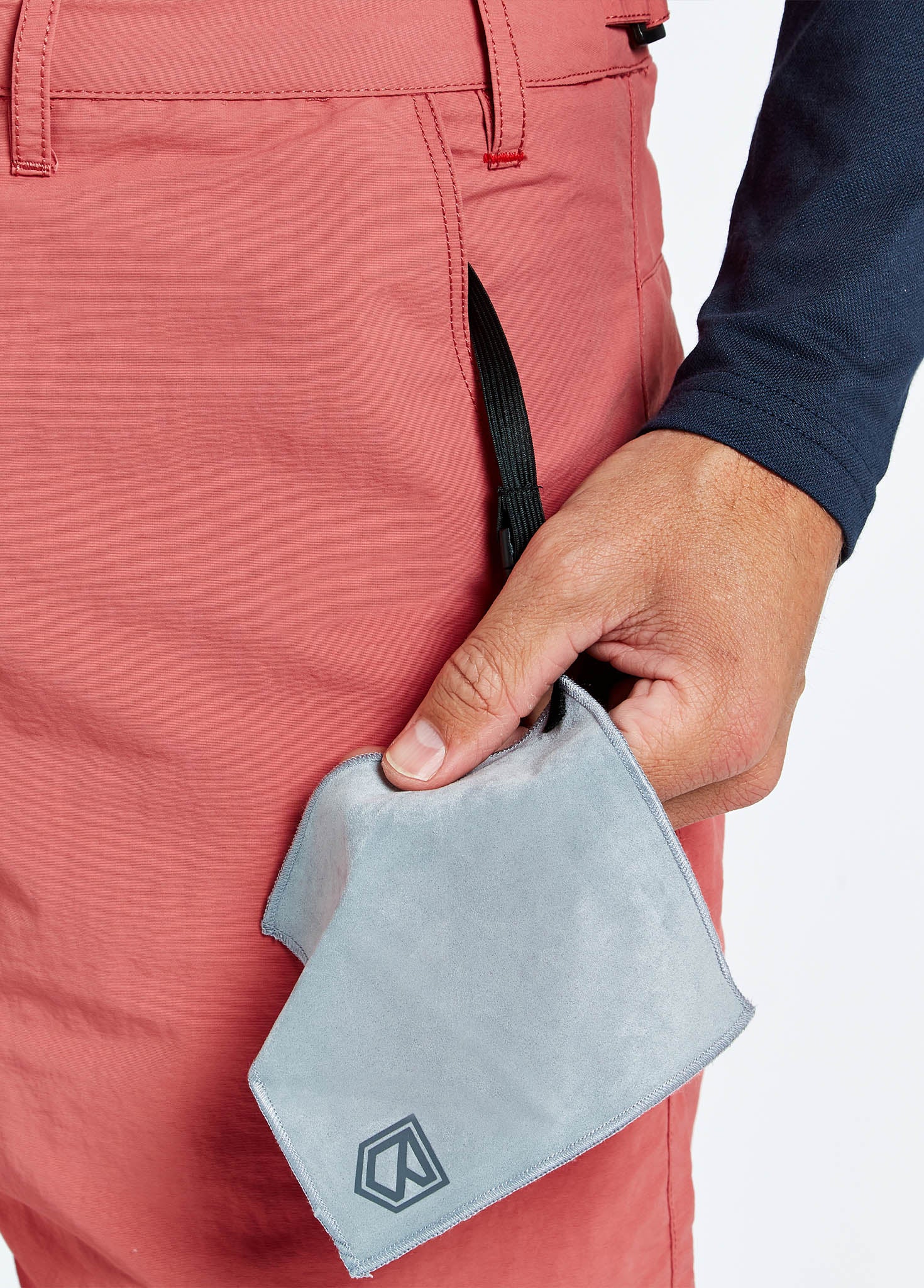 Classic, stylish and sporty, our Cyprus men's crew shorts are a new design inspired by our heritage and informed by our in-depth knowledge of sailing. The lightweight fabric repels water, dries remarkably fast when it does get wet, and serves as an effective sun protection with UPF-50 UV protection. They're also hard-wearing and will retain their colour after repeated exposure to sun and salt, even with regular washing. Technical features include a contoured, adjustable waistband with a non-slip inner and high back, designed for a secure and comfortable fit. Ample pockets secured with zips help keep your hands free when moving about on deck, and in one of the inner pockets you'll find a handy removable eyewear cleaning cloth on a bungee cord to keep your sunglasses clear of salt spray.