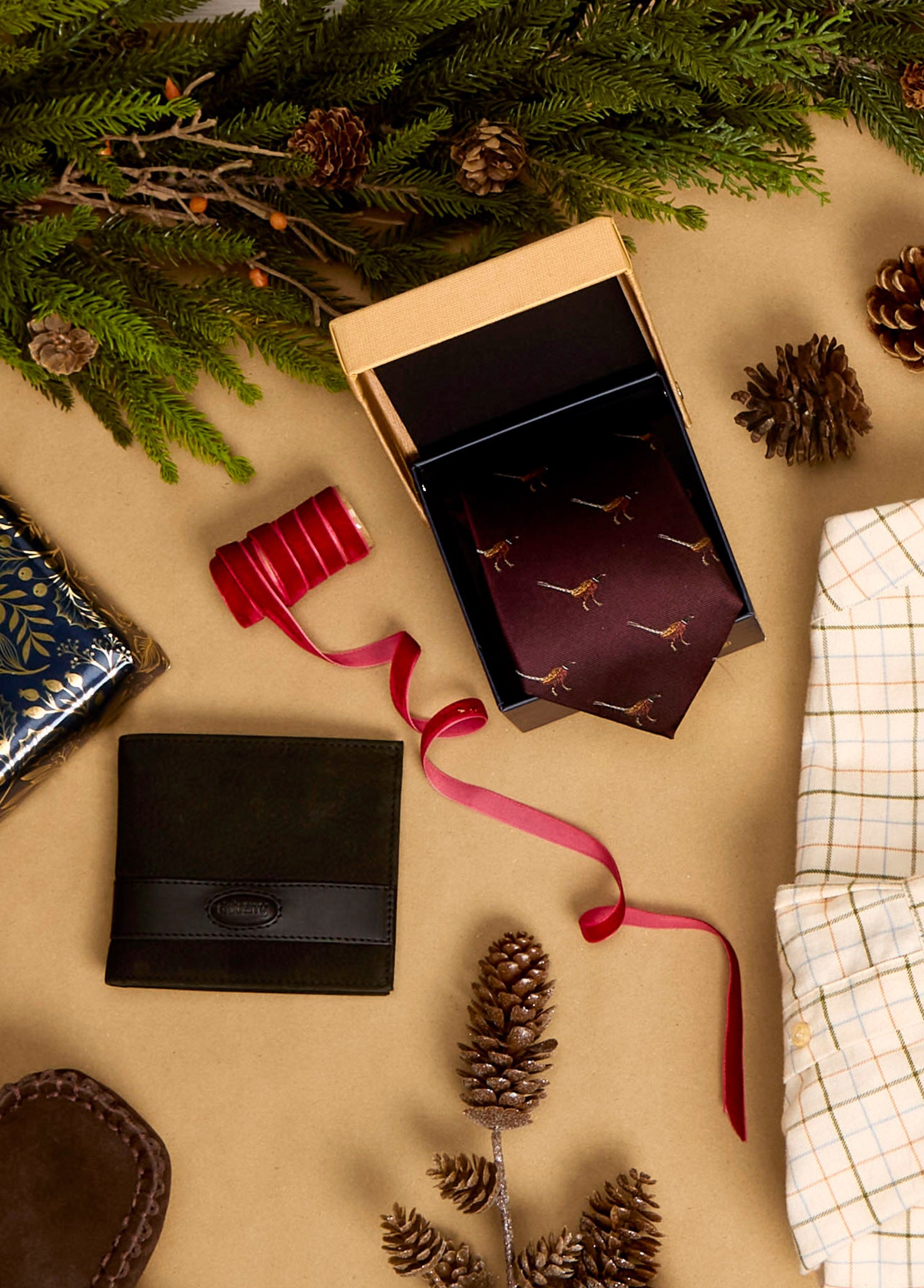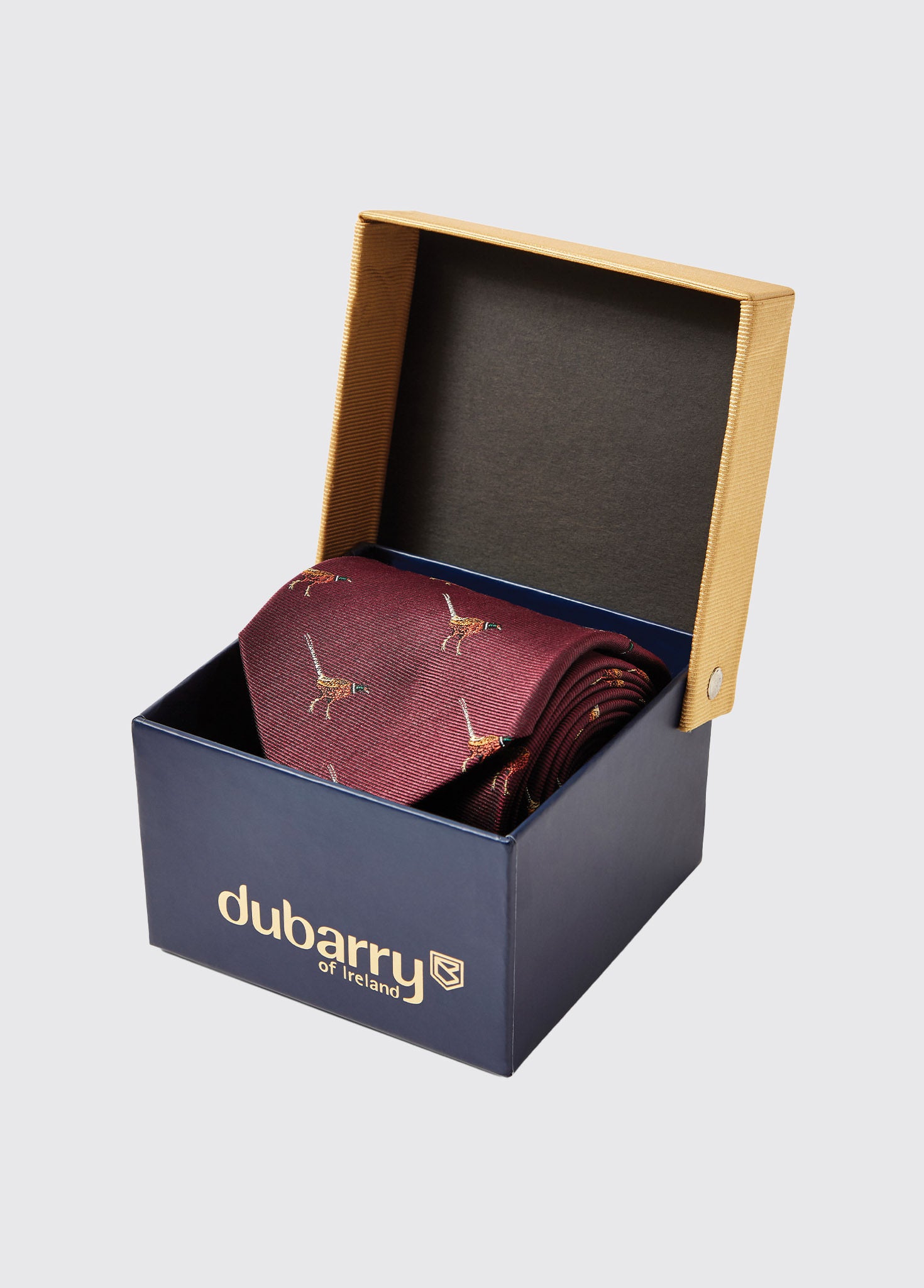 100% silk woven tie with pheasant motif. Available in a choice of colours.