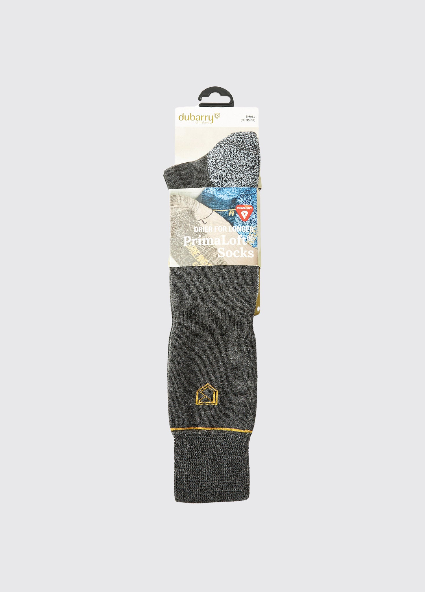 Long PrimaLoft® and Merino wool mix sock. Fitted to left and right feet, with elastic grip for fit and support. In a range of colours.
