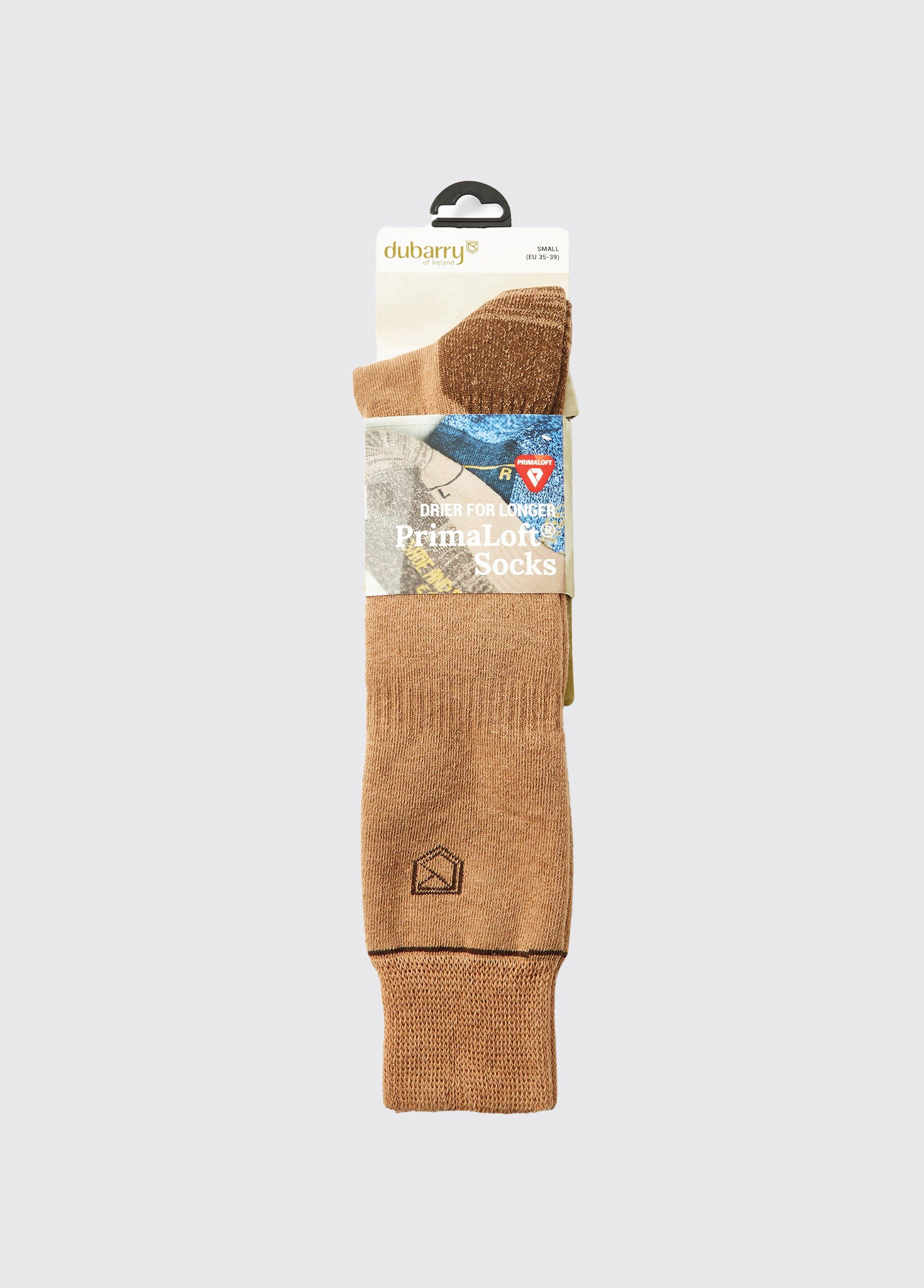 Long PrimaLoft® and Merino wool mix sock. Fitted to left and right feet, with elastic grip for fit and support. In a range of colours.