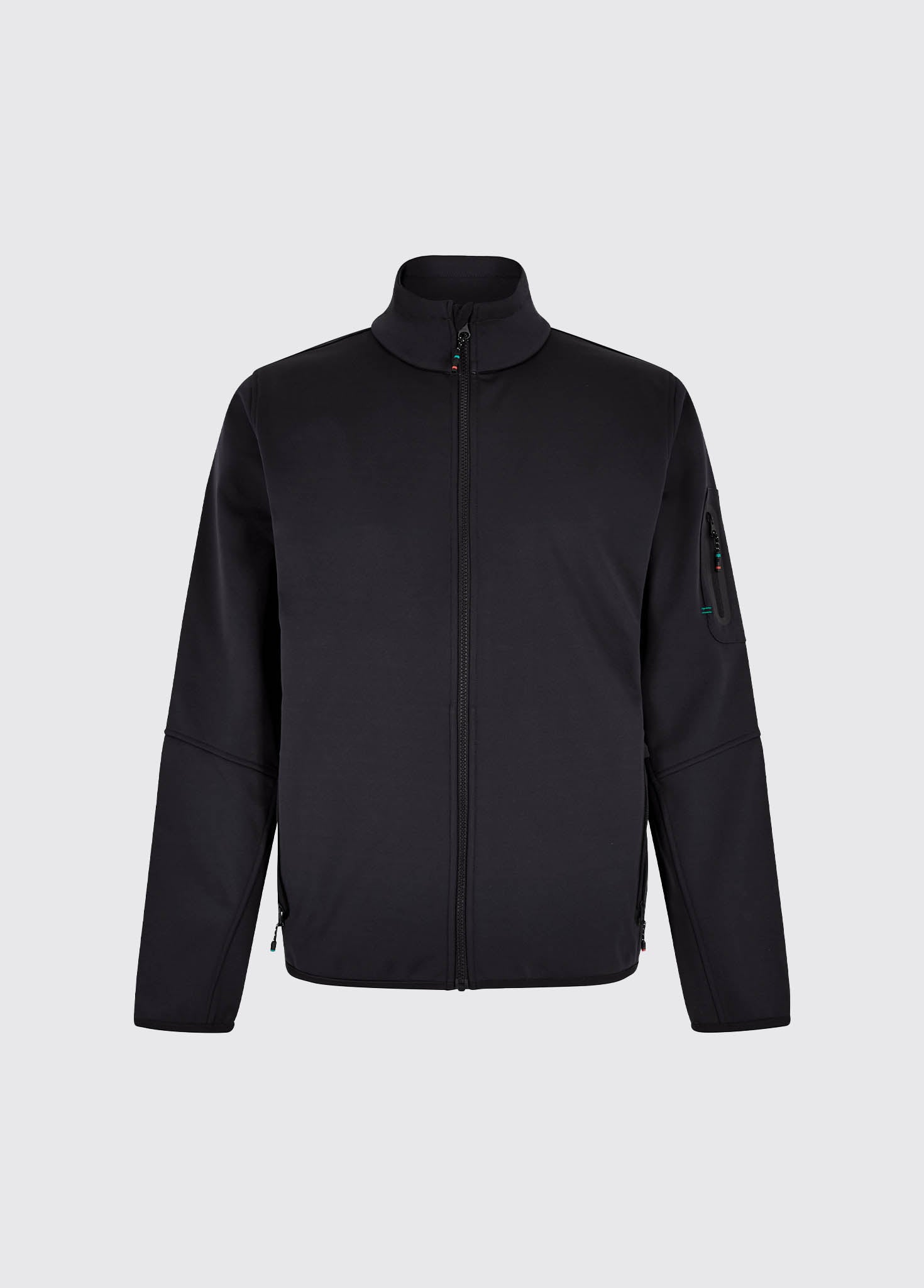 Soft-shell jacket. Windproof, water-resistant and insulated with a soft brushed feel inside. High-stretch body, hem and cuffs, plus articulated sleeves.