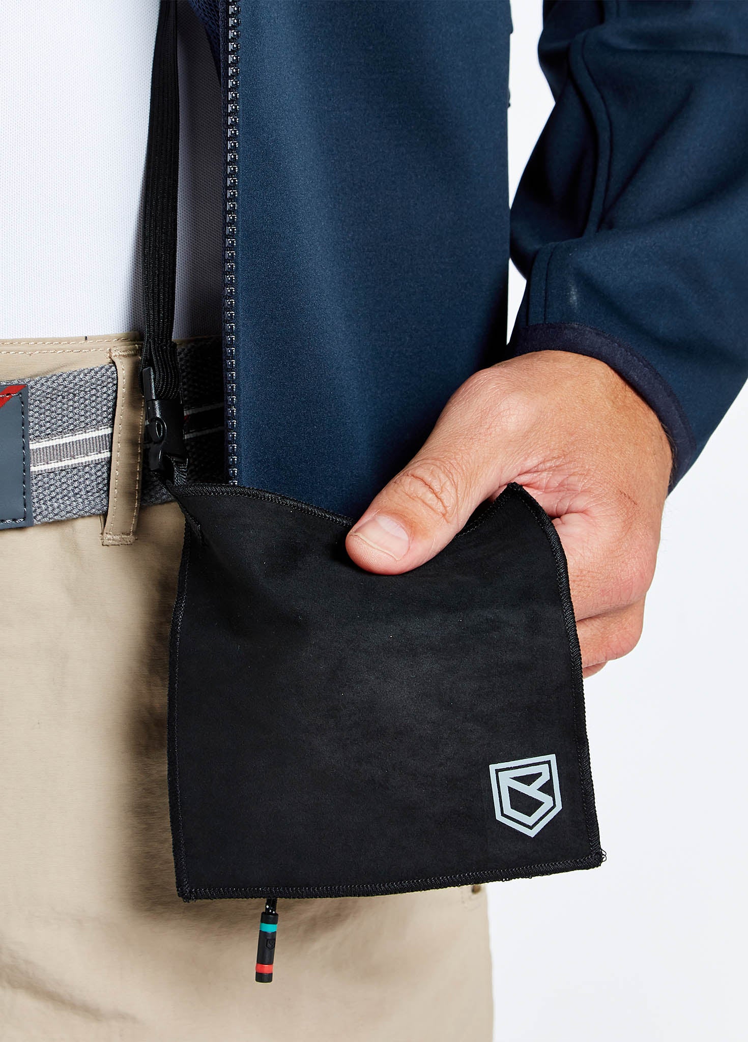 • Keep eyewear crystal clear with a cleaning cloth on a bungee cord