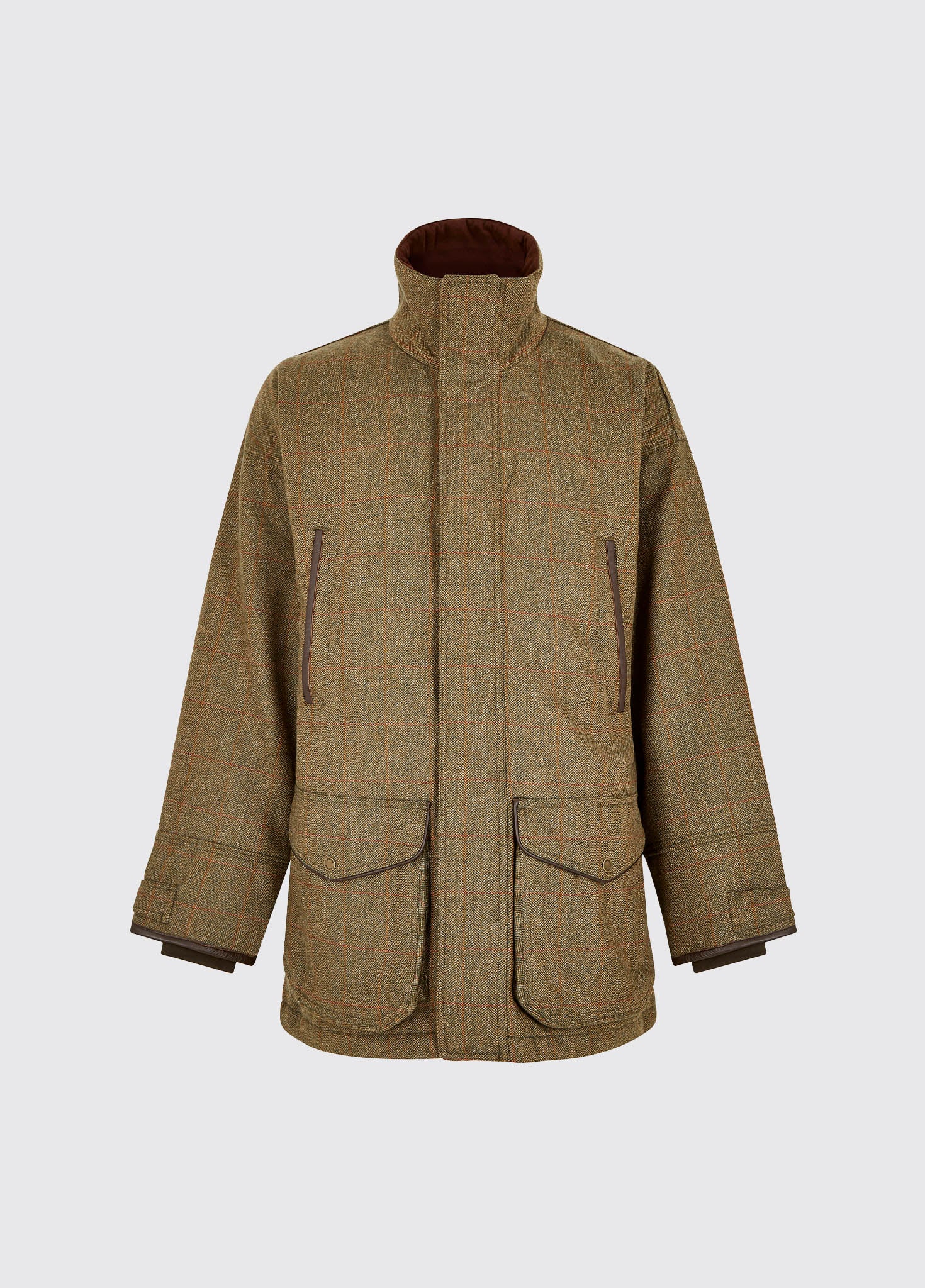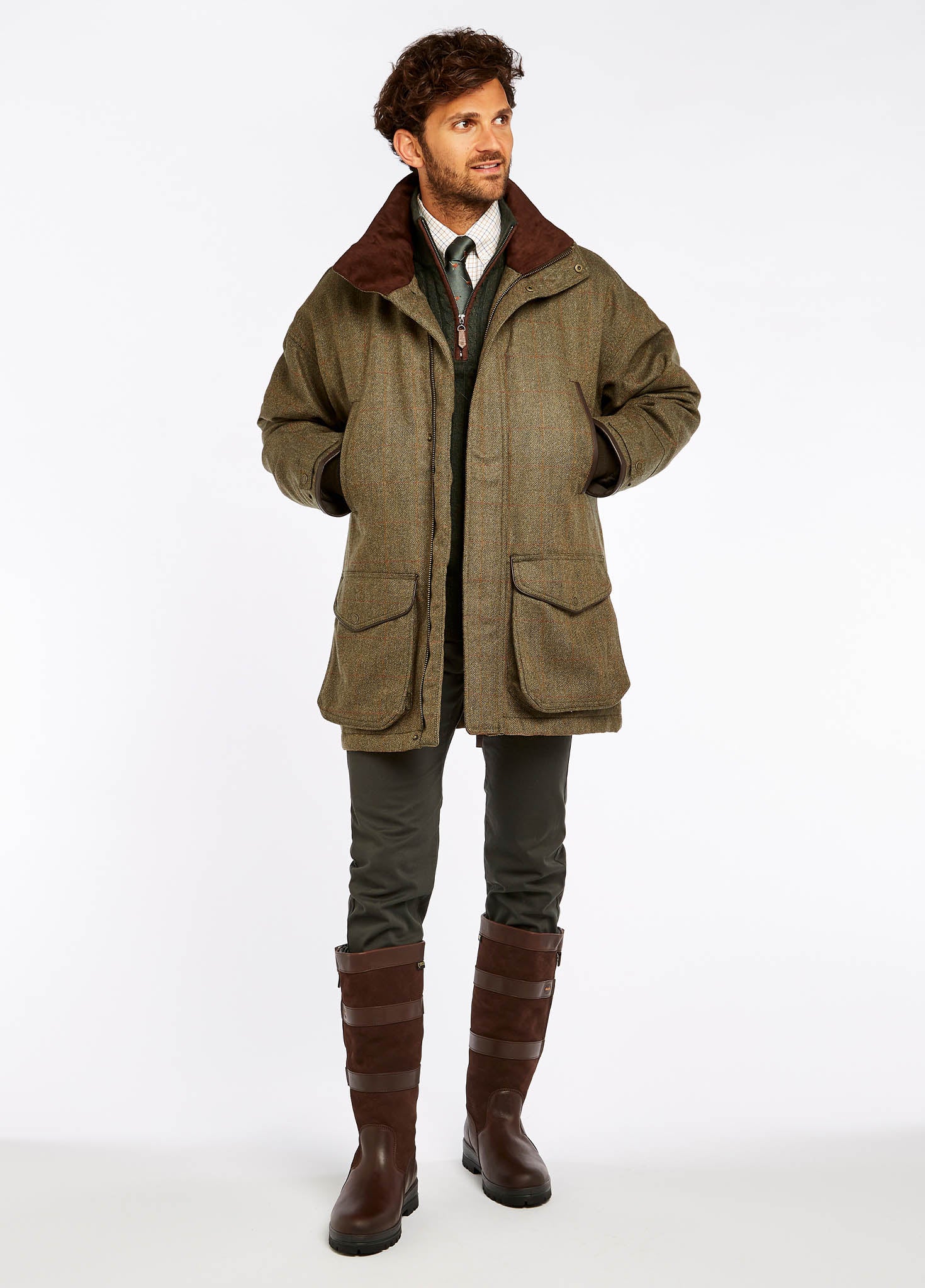 The Ballinturbet men's tweed field coat is made from Teflon® coated 100% Pure New Wool so this field coat is designed to keep you warm and dry even in the toughest weather conditions. With GORE-TEX Product Technology and other warming features, you can count on this field coat to provide you with the insulation you need.