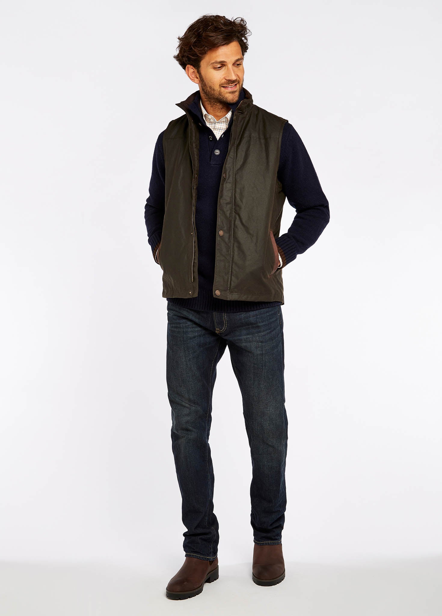 The Mayfly is a waxed gilet with lightweight PrimaLoft filling to insulate without being bulky. A great light layer for autumnal walks worn over a chunky Dubarry knit, the lined collar and leather trim bring a smarter feel for more formal wear too.